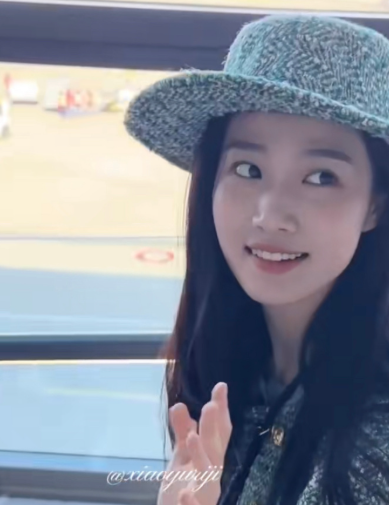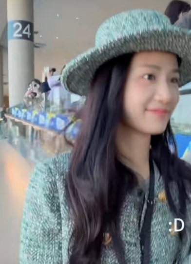 卢昱晓机场路透,小香风穿搭好好看啊,淡妆超水嫩的,好美!