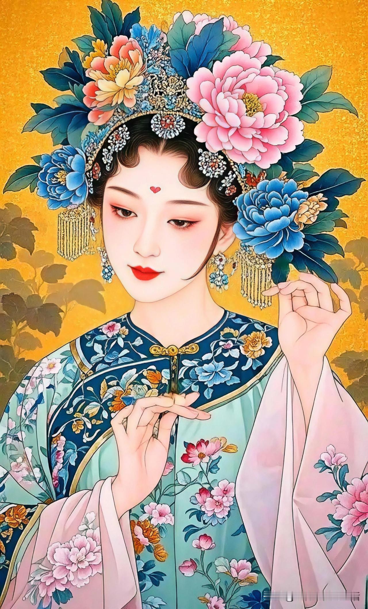 青丝绾正,华服映芳容。