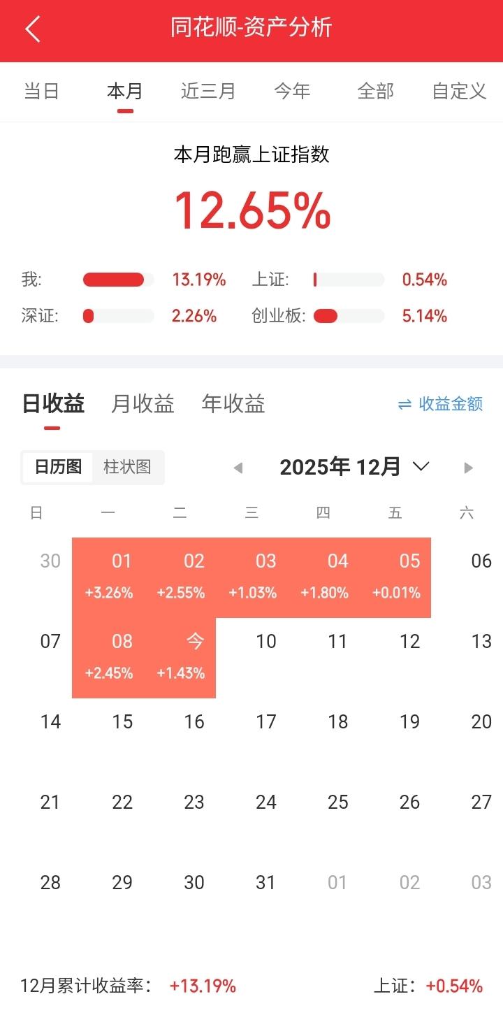 12月9日实盘:东百继续涨停大肉助长连红,达华放量分歧打板回封! 1、东百集团 东百竞价直接开出一字板非常意外,盘中虽然出现了一定资金抢跑分歧,但是做多资金非常给力,最终再次强势收获一个涨停板,这只个股整体盈利已经来到20.99%! 东百今天竞价是明显超预期表现,而它盘中是明显带动了整个零售方向的走强,所以虽然盘中有一段时间看着抛压非常大,但是资金是一直有承接的,这样的表现肯定继续拿着,东百的涨停也助力小胖拿下12月7连阳! 2、万通发展 万通竞价不到1个点的低开符合预期,但是它开盘就有明显下杀,好在很快有支撑出现承接拉上分时均线,但是始终难以突破开盘高点,之后一直沿着分时均线震荡,考虑到开盘后存储芯片整体是趋势上行的,所以对万通还是有一定期待,但是10点过后,出现资金明显砸盘下杀,在明显要跌破开盘低点的情况下在13.42位置止损离场,这只个股当日亏损2.96%,整体亏损达到了4.62%! 万通今天的卖点算比较差,当时看要跌破开盘最低点,要腾出仓位做首板,而万通是持仓个股中最不可能拉升的,所以果断割了它,虽然卖在相对低点,但是腾出来的仓位买到一只不错的个股,这样也算还不错! 3、格尔软件 格尔竞价低开2个多点偏弱,但是它开盘后始终在分时均线上方,这样的表现还是非常强势的,所以可以等待它出现资金做多拉升,盘中确实出现了明显的拉升,但是考虑到昨天亏损较多,而且它这个拉升是明显带量的,所以选择格局,午后跌破分时均线下走的特别弱,但是因为亏损幅度不大,所以还是心存幻想,最终在尾盘看没多大机会的情况下在24.25的位置清仓离场,这只个股当日亏损1.26%,整体亏损达到了5.56%! 格尔今天再次出现了明显的韭菜思维,盘中其实给到了不错的卖点,而且这只个股并不算活跃个股,这样的情况下就是要及时止盈的,可惜因为昨天亏损太多,没有回本的情况下患得患失,错过了多次卖点,最终反而绿盘割肉,确实挺可惜的,以后这种情况下,千万不能想着没有回本,模式内的卖点就该尽快兑现! 4、太阳电缆 太阳昨天尾盘龙头低吸法介入的个股,早盘竞价近7个点的低开是非常弱的,但是它开盘是有资金承接试图拉升的,可惜很快有资金兑现下砸,之后一度砸到跌停附近出现支撑,之后出现过突破分时均线的走势,但是那一波拉升甚至没有突破早盘的高点就回落,午后再次出现资金承接拉升,但是连续两次冲到0轴附近回落,考虑到拉升无量,所以先在10.17位置止损半仓,剩下半仓在明显走弱时在10.08的位置清仓离场,这只个股整体亏损2.45%! 太阳的卖点是吸取了格尔教训的,在感觉拉红无望的情况下能够小亏出局已经非常幸运了! 5、达华智能 早盘竞价商业航天方向虽然有分歧,但是龙洲依然出现强势资金顶板,那么同样是海峡叠加商业航天的达华就非常有看点了,所以它虽然开盘就有资金兑现,但是整体承接还是不错的,在短时间内出现三封且已经是放量的情况下小仓位介入,之后很快稳稳封死涨停! 达华算是明显的看A买B的思路,龙头龙洲足够强势必然会带动后排,而达华是属于1进2,所以虽然早盘短线情绪并不太好的情况下是可以去做的,而关键的板上支撑和量能释放充分也都满足,所以介入回封就是模式内的买点! 6、中央商场 10点多的时候,整个零售方向异动明显,先是茂业深水区直线拉升涨停,之后永辉和中央同时异动拉升,考虑到永辉流通市值过大,最终选择了盘子更小的中央,在它封板前放出明显倍量的情况下突然出现大单,直接扫板介入,成交价4.05,买入后不到6秒,就出现了资金强势抢筹封死涨停! 中央是典型的首板模式个股,之前走出连板后持续回调,这个位置走出倍量涨停且有板块效应的情况下打板介入的性价比是比较高的! 7、实达集团 尾盘买入法其实有多个备选标的,最终还是选择了辨识度最高的实达,因为它今天早盘竞价开出来是偏强的,而且开盘后不管算力还是海峡方向都较强,所以它早盘是实实在在有资金承接做多的,最终尾盘大幅砸盘跟昨天机电类似,所以龙头首阴的买入法介入它性价比可能会不错,毕竟不管算力题材还是海峡题材都可能会有反复,实达辨识度又非常高,它整体上涨的幅度还没有翻倍,再加上今天依然有量,这样的个股是很难走A杀的,隔日一旦出现修复,或许会有惊喜! 整个12月份小胖虽然连红7天,但是整体收益并不高,主要是仓位比较分散,这样的稳定盈利小胖其实还是比较满意的,从10月份开始,小胖更注重回撤的控制,虽然整体收益增长缓慢,但是确实明显控制了回撤,而且现阶段的模式复利下来也是非常不错的,希望接下来能够继续保持住,小胖的实盘分享不是显摆,更多的是希望粉丝朋友们能够在这之中学到一些东西,规避一些类似的错误,这样才会有进步,才会成长!希望我的实盘分享能够帮助到大家! 文中的内容仅为分享和交流,不作为实际操作建议!