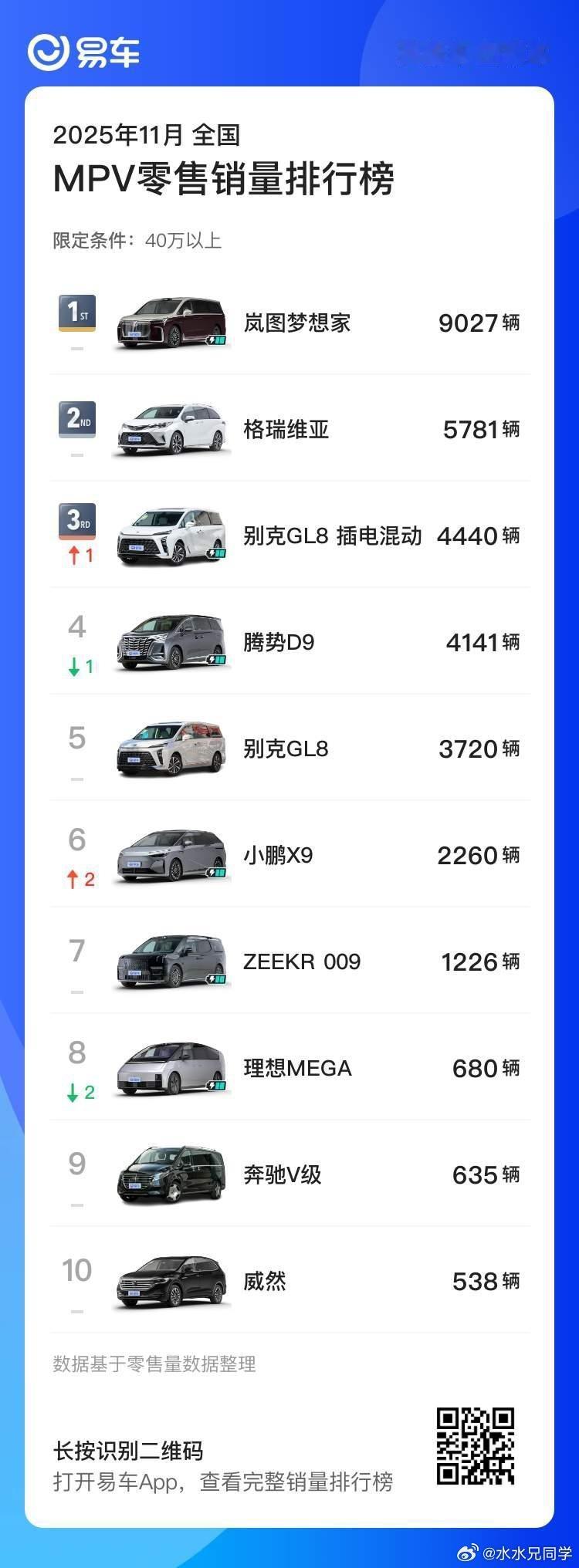 岚图梦想家的表现真不错啊,只有一个限定语是40万以上,干掉了一票合资品牌水哥有话