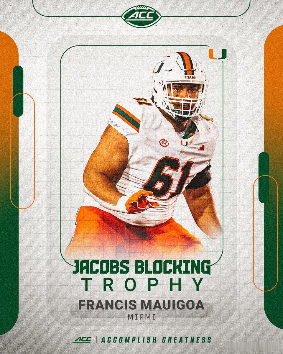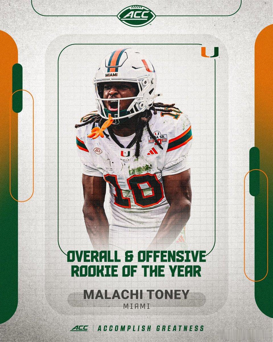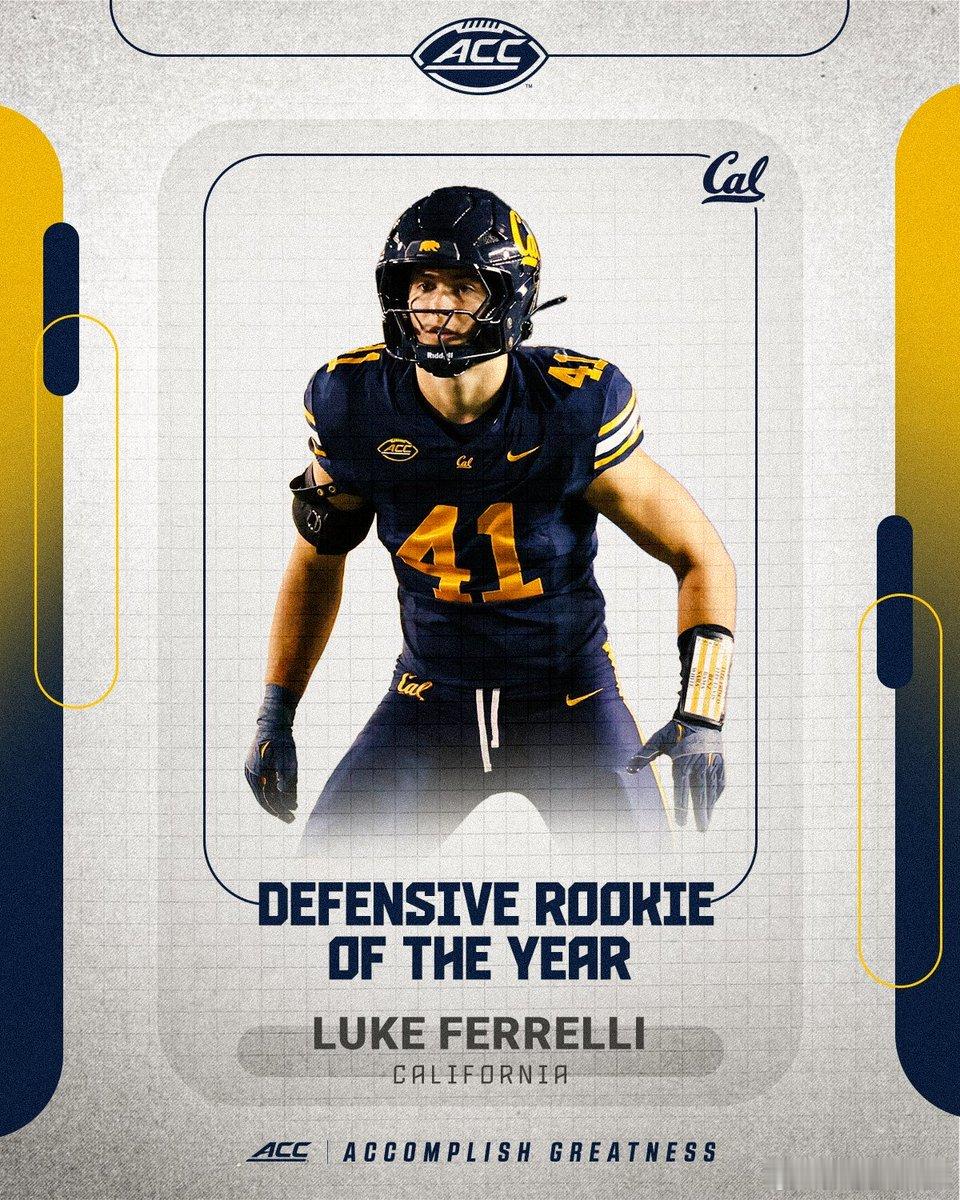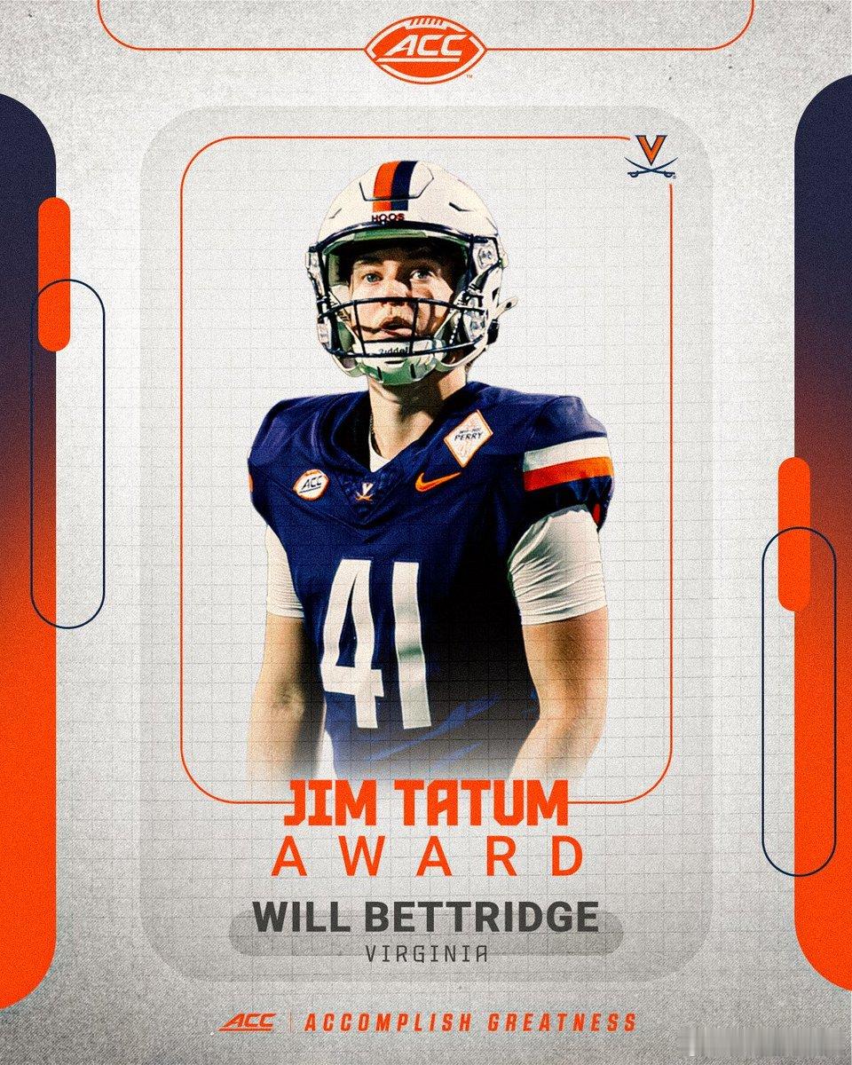 2025年ACC联盟赛季表现奖和最佳阵容公布。年度最佳球员+最佳进攻球员:Haynes King(QB),乔治亚理工学院。年度最佳防守球员:Rueben Bain Jr(DE),迈阿密大学。年度最佳新生+年度最佳进攻新生:Malachi Toney(WR),迈阿密大学。年度最佳防守新生:Luke Ferrelli,加州大学伯克利分校。年度最佳教练:Tony Elliott,弗吉尼亚大学。雅各布斯阻截杯得主:Francis Mauigoa (T),迈阿密大学。Jim Tatum奖:Will Bettridge(PK),弗吉尼亚大学。Brian Piccolo奖:Bryce Steele(LB),波士顿学院。Keylan Rutledge(OL),乔治亚理工学院。