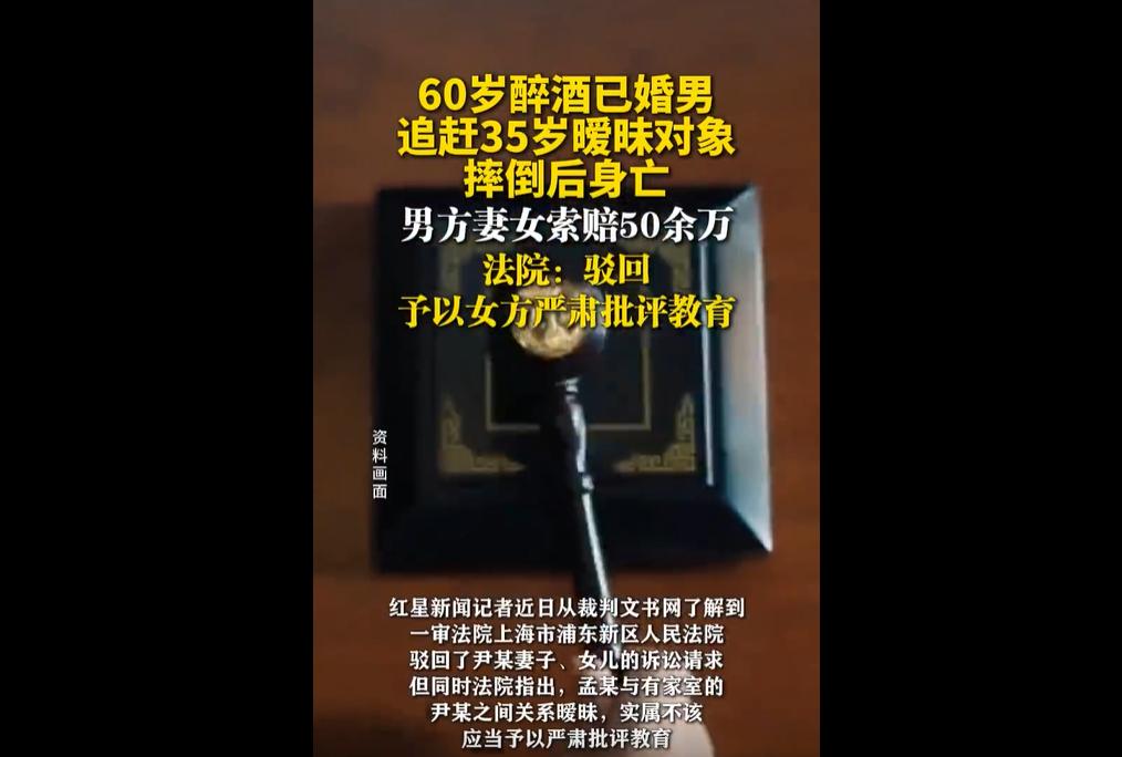 60 岁已婚男子尹某与 35 岁孟某有暧昧关系,一次聚会饮酒后,二人因分手事宜起争执,孟某骑共享单车离开。 醉酒的尹某执意追赶时不慎摔倒,经 9 天抢救无效离世。 尹某妻女认为孟某未对醉酒的尹某尽到护送义务,放任危险发生,将其诉至法院索赔 50 余万元。 上海浦东法院一审驳回诉求,认定尹某需对自身行为负责,同时批评孟某与有家室者搞暧昧的行为不当。 这事儿真是让人哭笑不得! 尹某一把年纪有家有室,却非要搞暧昧,醉酒后还冲动追赶,最后把自己置于危险境地,说到底还是没把握好分寸,妥妥的 “一时糊涂酿遗憾”。 他妻女悲痛之余想索赔的心情能理解,但把责任全推给孟某就有点说不过去了。 成年人总得为自己的行为负责,醉酒后执意追赶是尹某自己的选择,怎么能让别人为这份荒唐买单呢? 还好法院判得公道,既没纵容 “甩锅”,也批评了孟某踩道德红线的行为。 孟某也该吸取教训,明知对方有家室还保持暧昧,本身就不妥当。 这事儿也给大家提个醒:感情里得守底线,婚内更要懂分寸,遇事别冲动,不然轻则闹笑话,重则酿悲剧,最后得不偿失!