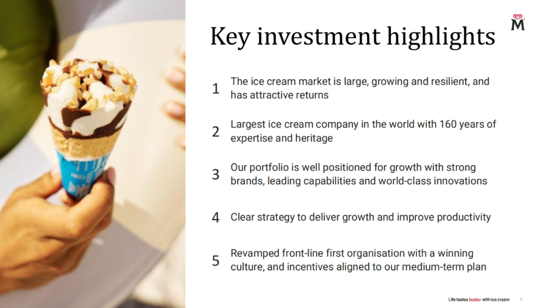 在上月举办的首场资本市场日活动中,这家冰淇淋巨头总结了五大关键的投资亮点,分别是:
