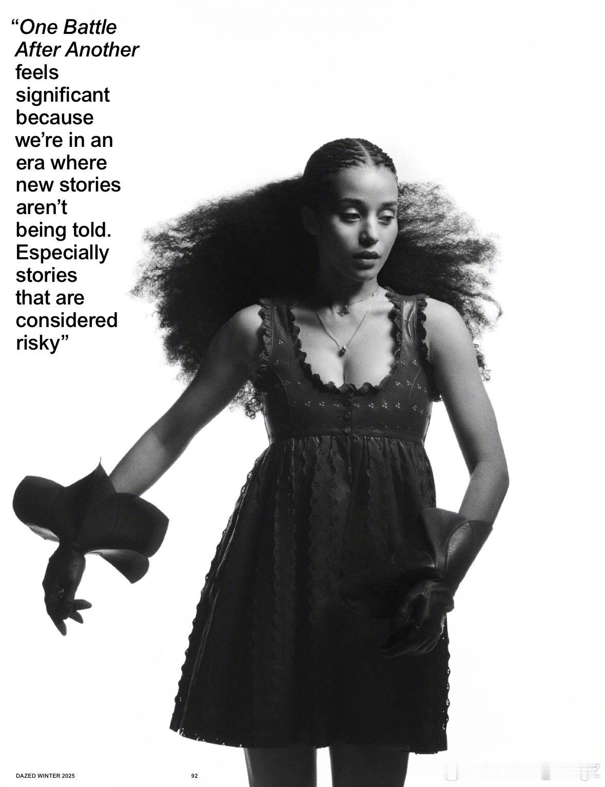 前阵子看了本次颁奖季热门影片《一战再战》,有被女主角 Chace Infiniti 的表现惊艳到。气质独特,美丽又不乏英气的她,无疑是好莱坞和时尚圈最需要的新鲜面孔。DAZED 已经率先送上新刊封面:身着 LOUIS VUITTON 2026 早春系列的 Chace Infiniti,完美演绎 Nicolas Ghesquiere 的前卫设计语言。接下来的几个月,Chace Infiniti 也势必成为各大红毯常客。此前她就曾身着 LOUIS VUITTON 亮相(图九)。或许顺势签下,也完全合理