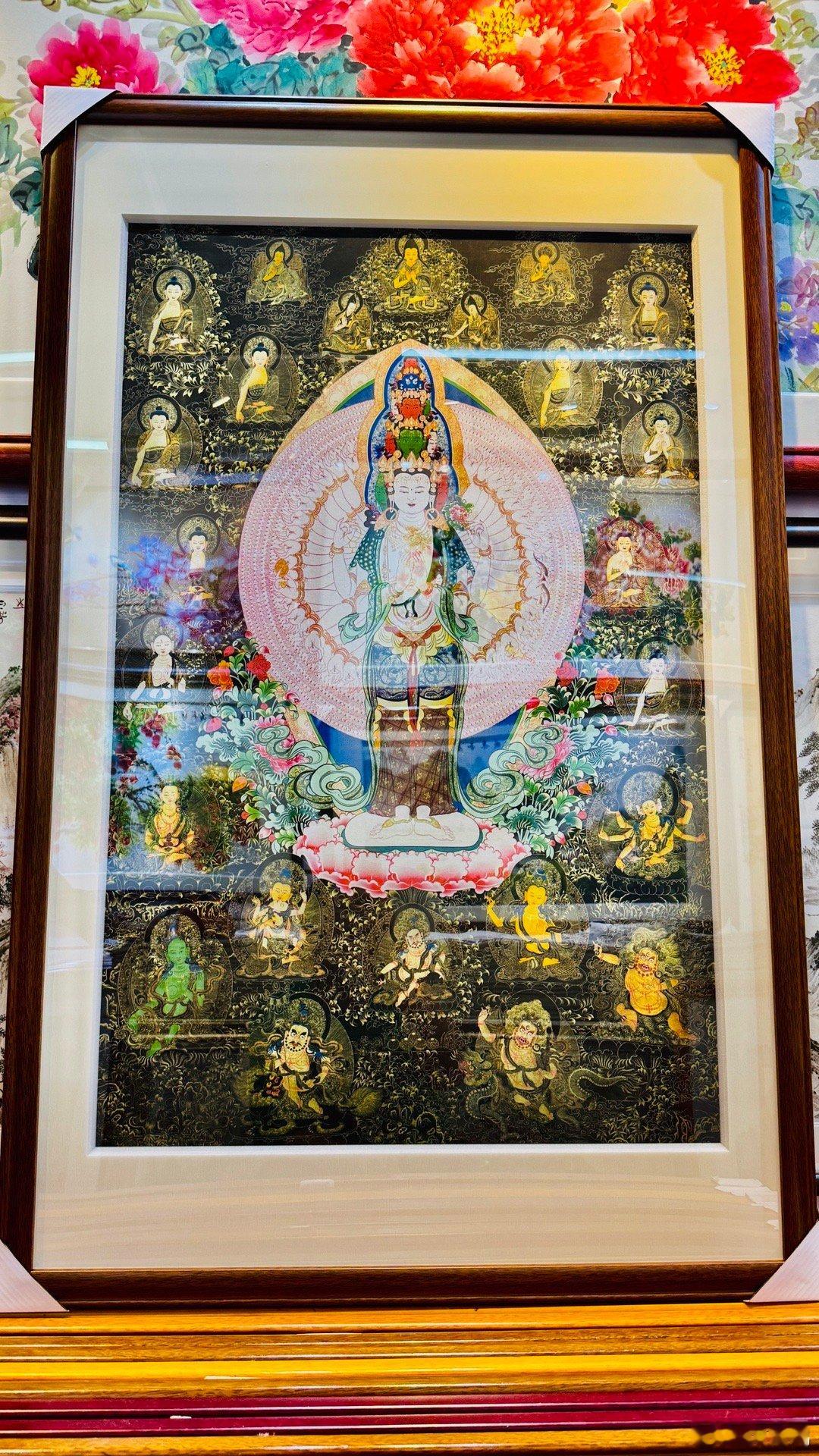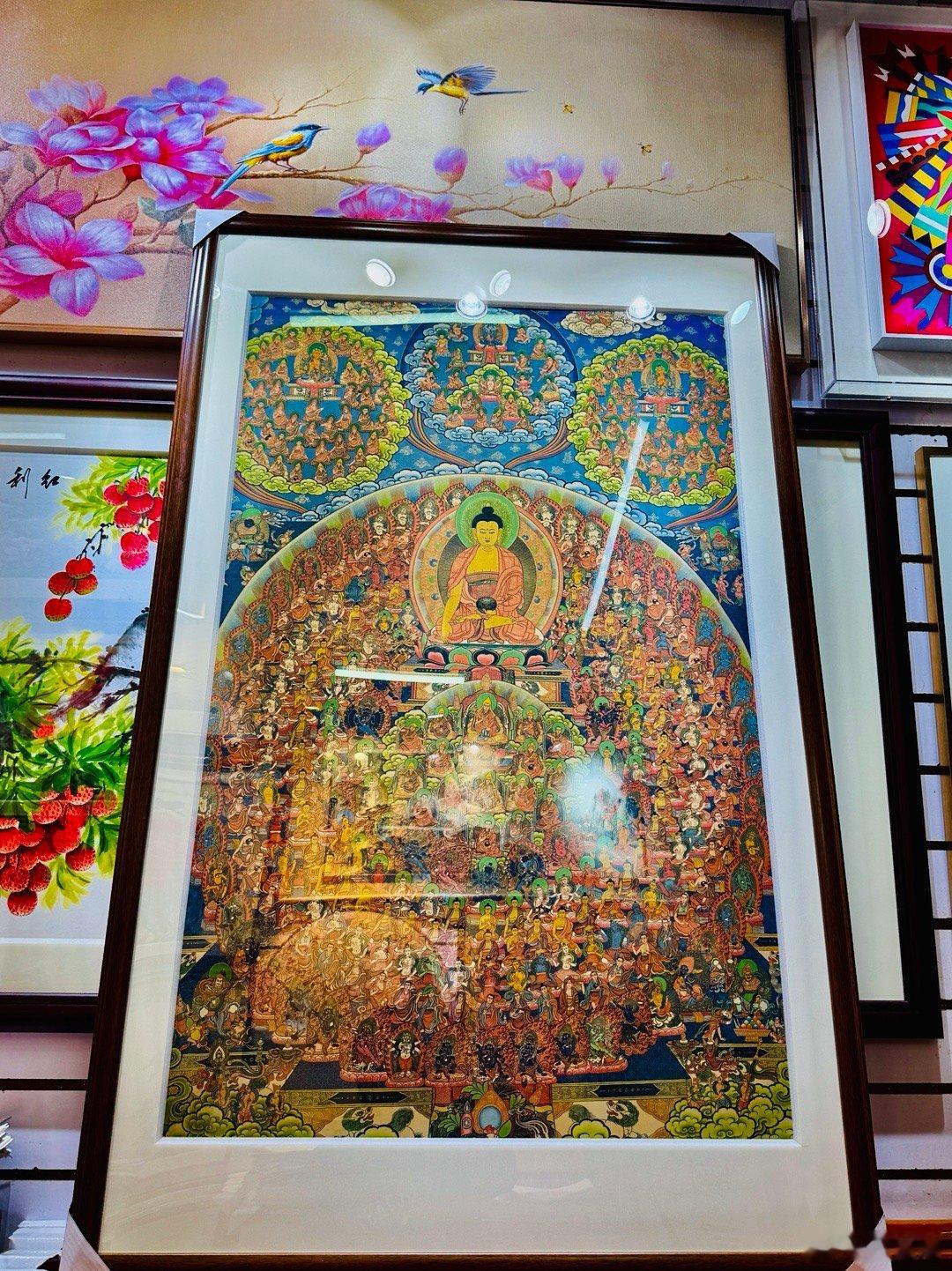 【药师佛会聚】➕【千手千眼观世音菩萨】唐卡终于装裱完成,再度感谢“红韵画廊”的精致装裱,靠谱!很虔诚很平静的两幅画面,常常瞻仰一下可以让烦躁的心安定下来,亦可以保佑家人安康特别喜欢第一幅作品,有一种时光沉淀留下的岁月痕迹,色泽不那么鲜艳才有沧桑感,表达“万佛朝中”的意境,更让人觉得它绝对是艺术佳作,每尊佛像都有开脸,每个细节都很到位……千金难买心头好,回去后慢慢欣赏鸣聊体育唐卡艺术唐卡 广州·红韵画廊