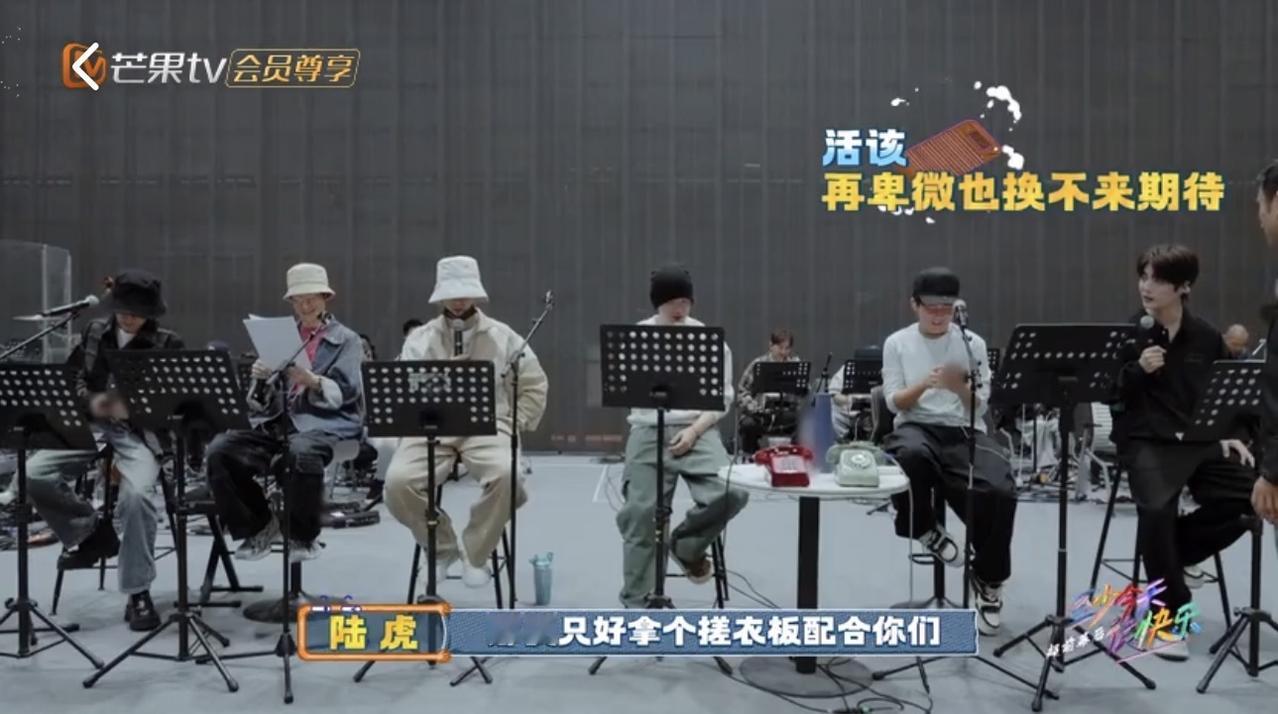 还是那个接梗刺客,陈楚生彩排《活该》要胶带。 哈哈哈,快乐的感觉又回来了。 哥几个彩排《活该》的时候,生哥开口唱“成年人总要有个交代”,开始抛梗说唱到这句歌词的时候手里要拿一个胶带,然后用他海南的口音喊话糊糊可以拿着“蔬菜”,张远立马纠正那是“素材”! 还是苏醒总是想大哥看齐,随即向工作人员要扑克牌,陆虎则表示他是不是拿个搓板跪上。 哥几个太🈶意思了。