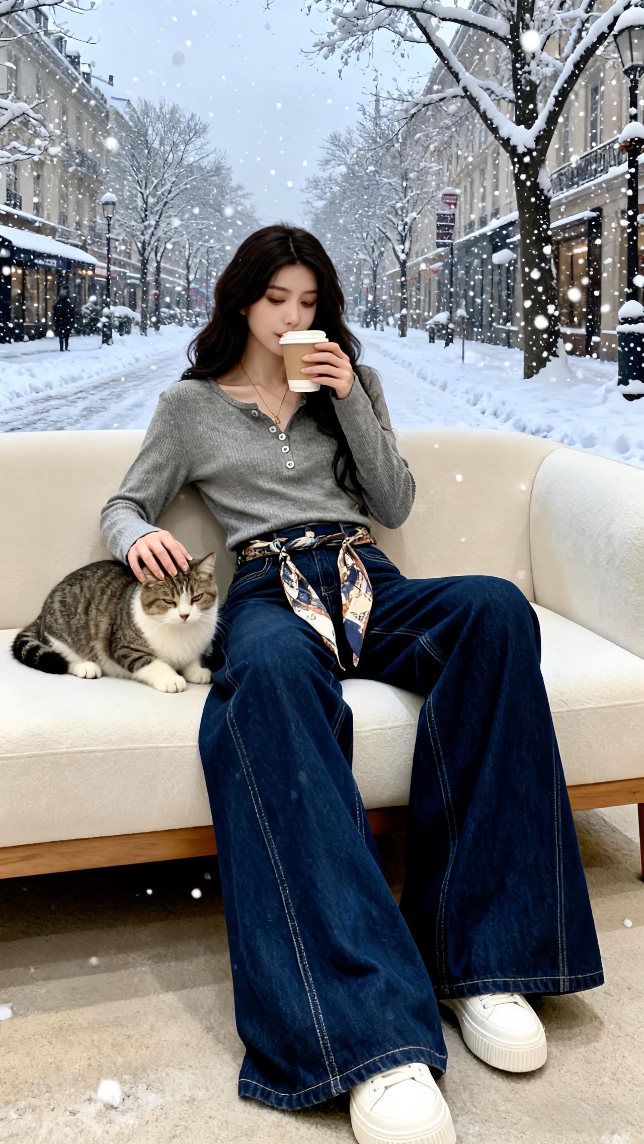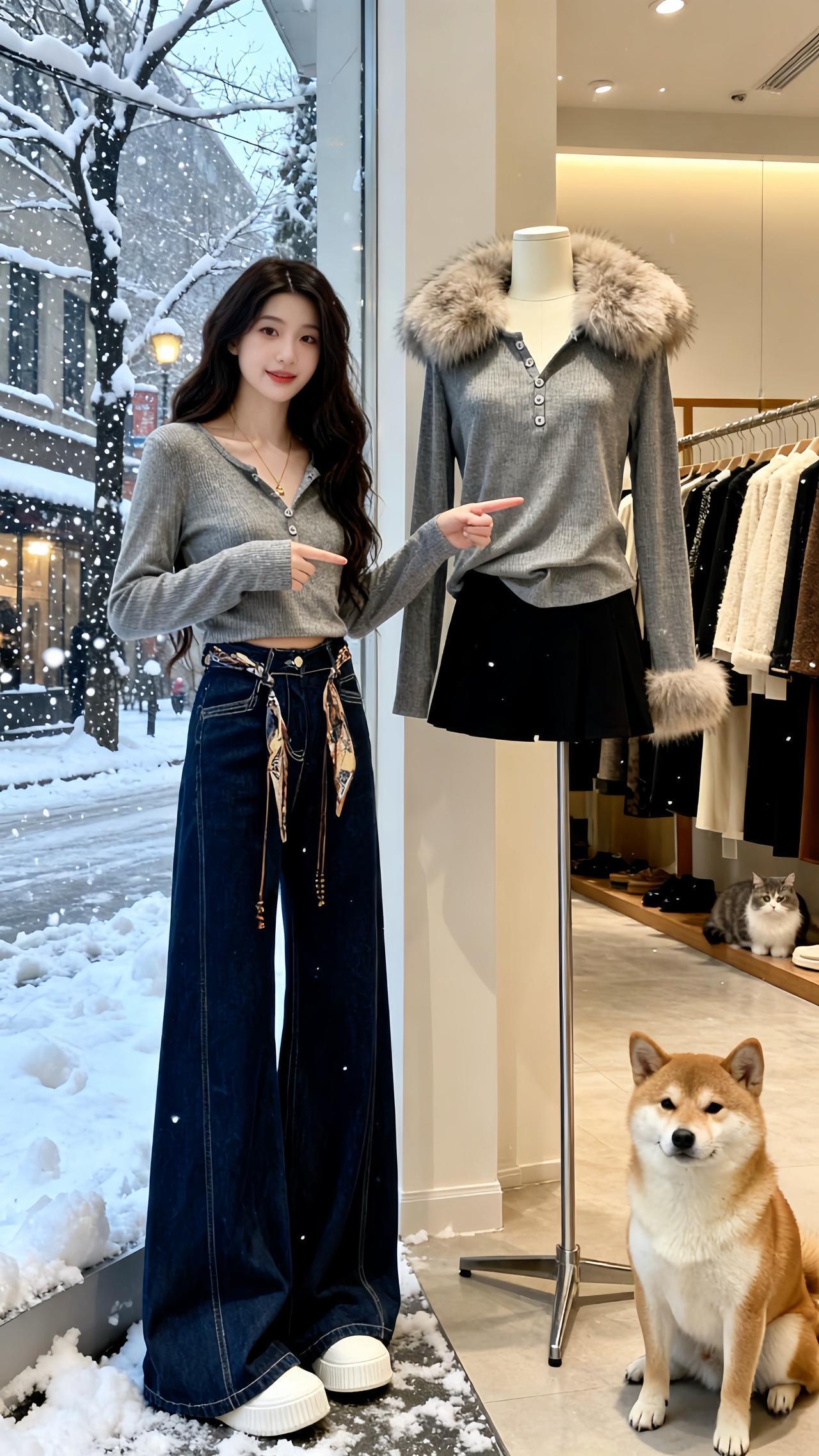 牛仔裤 牛仔裤穿搭 小个子穿搭 加绒阔腿裤 冬季穿搭