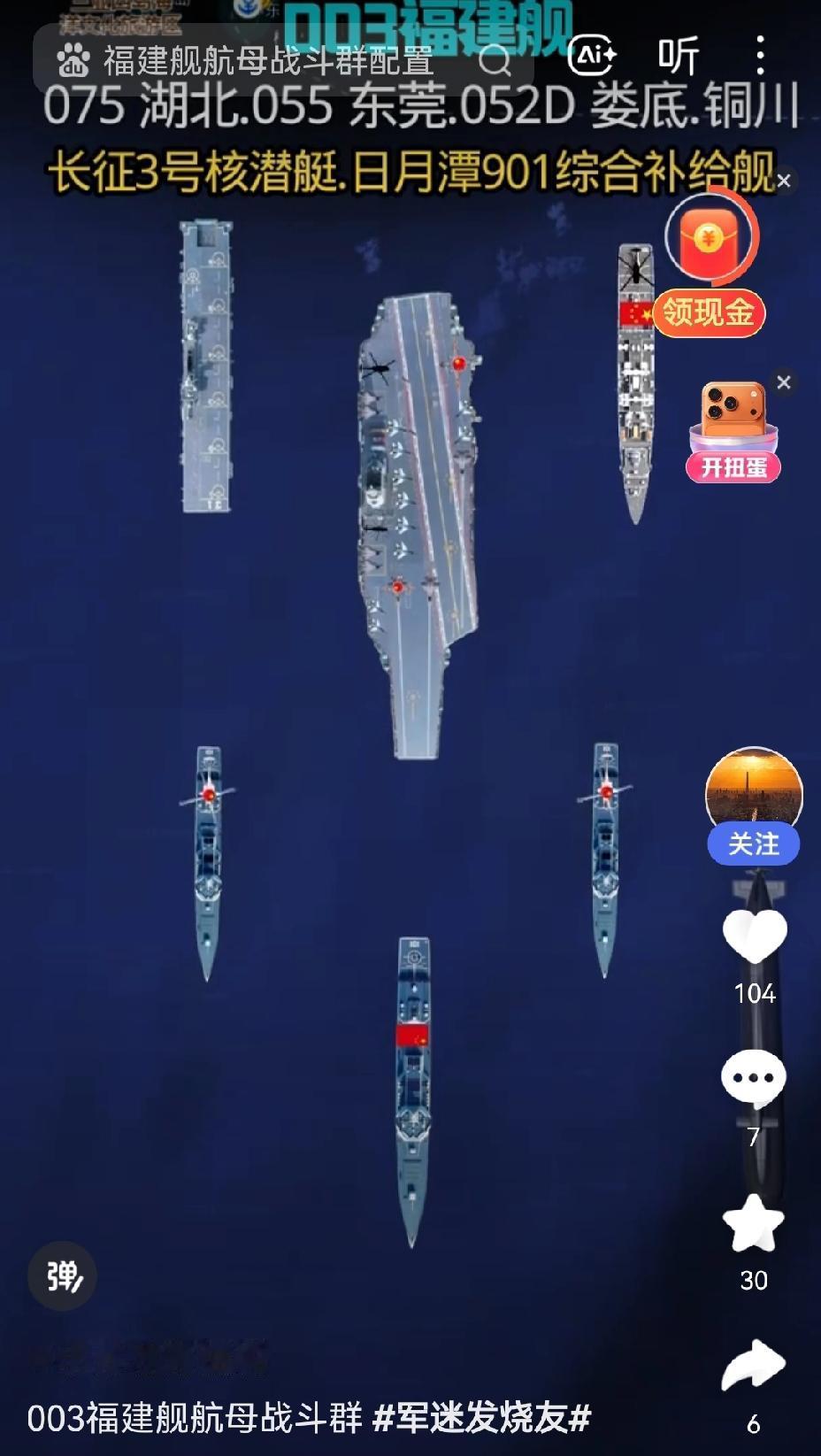美军的两个西太航母战斗群来了,有华盛顿号和林肯号航母战斗群组成,加上日本的三艘准航母,正式拉开介入和反介入台海真实临界状态的演习序幕,这里,觉得在这个外围态势来看,福建号的地位有点像预备队,也像是两个高手对峙的旁边,站在旁边看着准备随时加入,有着决定性的作用。觉得辽宁号对标日本的准航母,唯有福建号的对手才是美军的这两艘航母带领的战斗群,这个,有点像小时候玩军棋,前面放一个师长,后面跟着炸弹,即使是师长被对方伏击阵亡,后面的炸弹就会为他报仇,干掉对方的军长或者司令,对方就得暴露军旗的位置,成为对方攻击的目标,并且,取得胜利。当然,这样的演习才开了头,以后,还会有战术和战略变化,从这个意义来看,台湾回到祖国怀抱,还真的不是久远的目标。此文纯属个人观点,请仔细甄别。