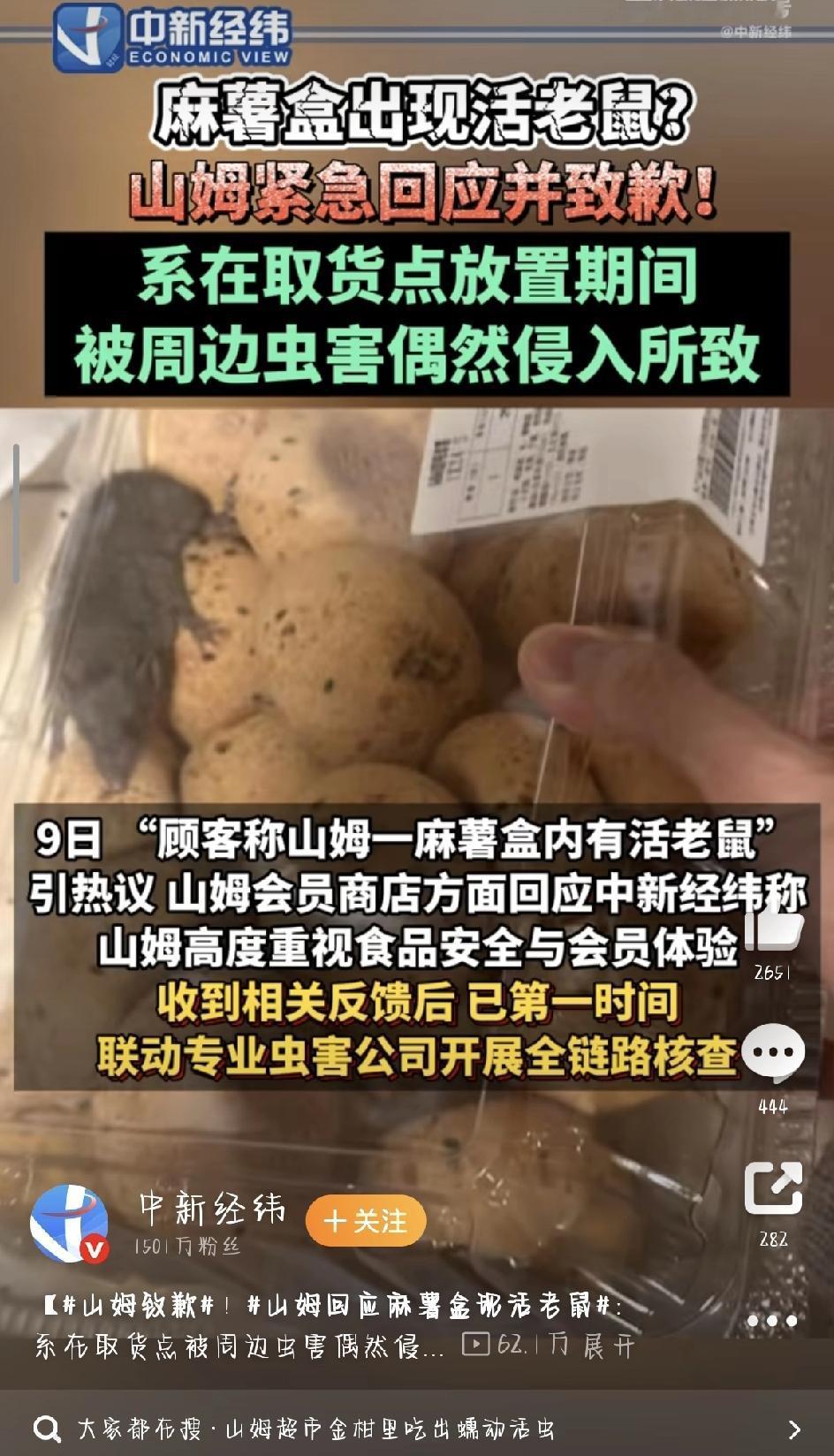 12月9日,“深圳一山姆麻薯盒里有活老鼠”的话题在社交平台炸开了锅,本来是大家爱