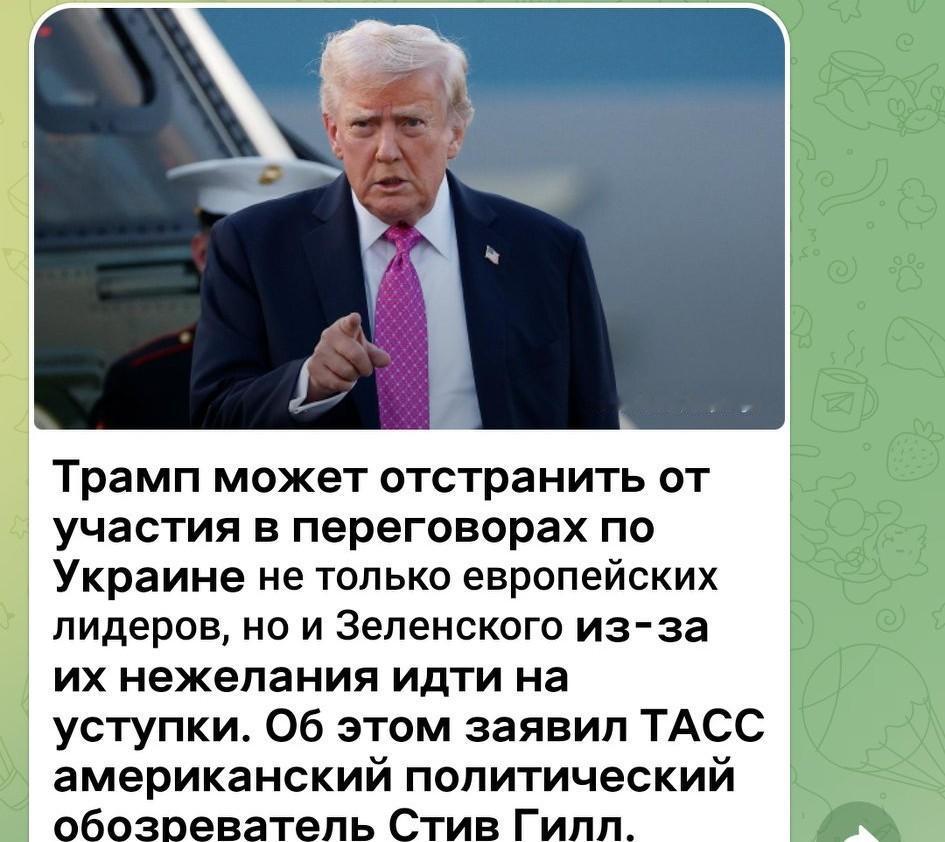 [笑哭]因欧洲领导人和泽连斯基不愿做出让步,特朗普可能将他们排除在关于乌克兰的谈判之外。美国政治评论员史蒂夫·吉尔在接受塔斯社采访时表达了这一观点。