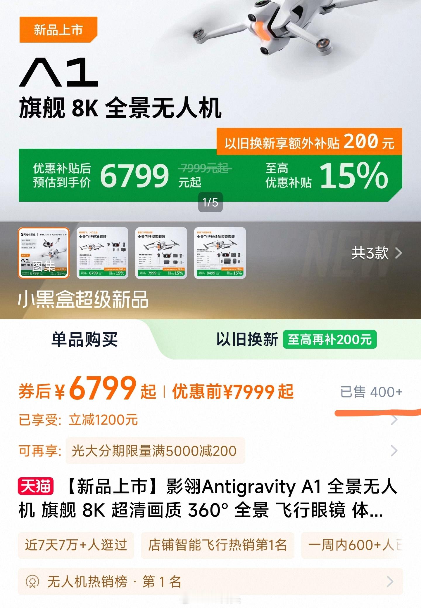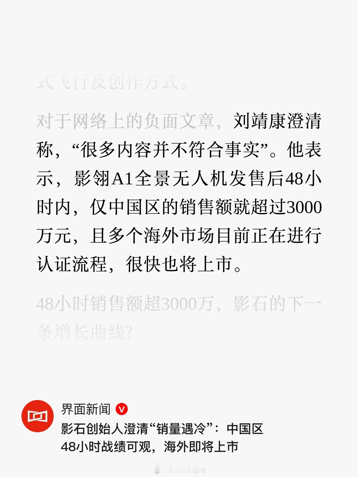 影石创始人澄清“销量遇冷”,影翎A1全景无人机发售后48小时内,仅中国区的销售额就超过3000万元。看了下影翎A1起售价为6799元,总销量应该超过4000套。京东销量300多套,天猫销量400多套,剩下的都是线下卖的吧?