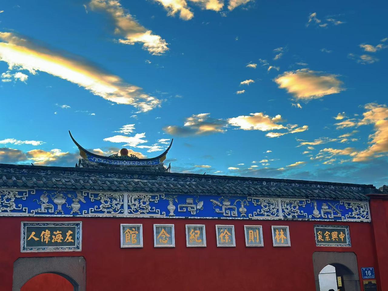 这张图里的林则徐纪念馆也太出片了!红墙配着蓝底雕花的屋檐,撞色超惊艳,再加上天边那抹七彩霞光,像给古建筑镶了金边。站在这儿抬头看,蓝天白云衬着鎏金的字,既有历史的厚重感,又透着说不出的美,随手一拍都是壁纸级画面,逛一趟既涨知识又能打卡,值!