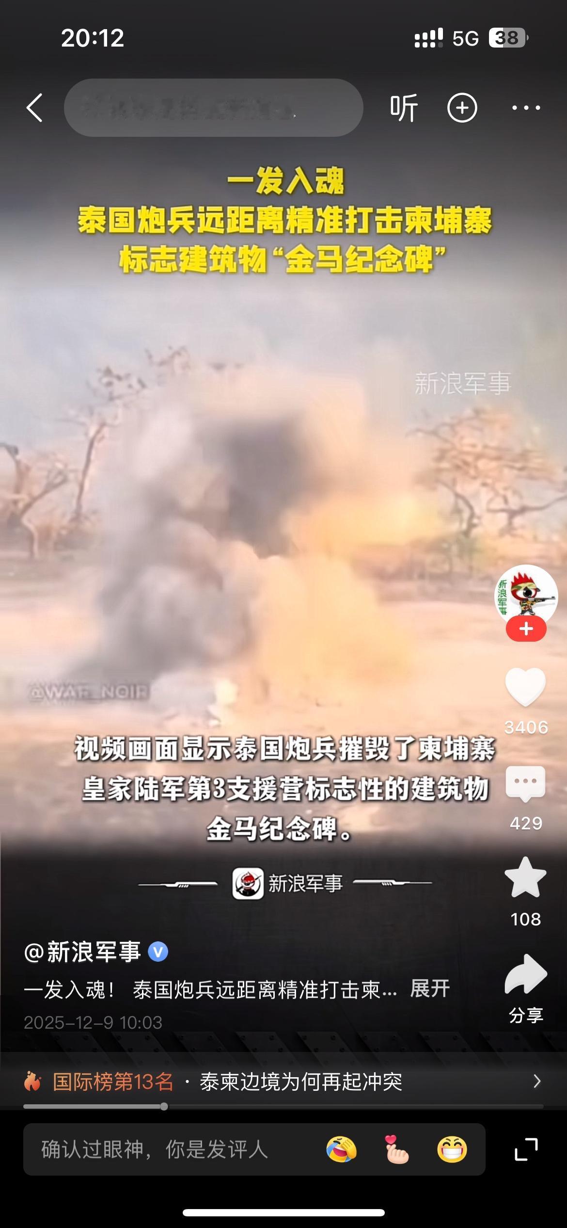 泰军这一炮打的是真准,直接一炮下去, 柬埔寨皇家陆军第三支援营的标志性建筑“金马纪念碑”就剩马尾了! 感觉泰军的炮弹的命中精度能达到如此准确度,看来泰军的战备训练水平不低! 泰军打击柬军的“金马纪念碑”,更多的是打击柬军的士气,毕竟一个纪念碑象征意义更大!
