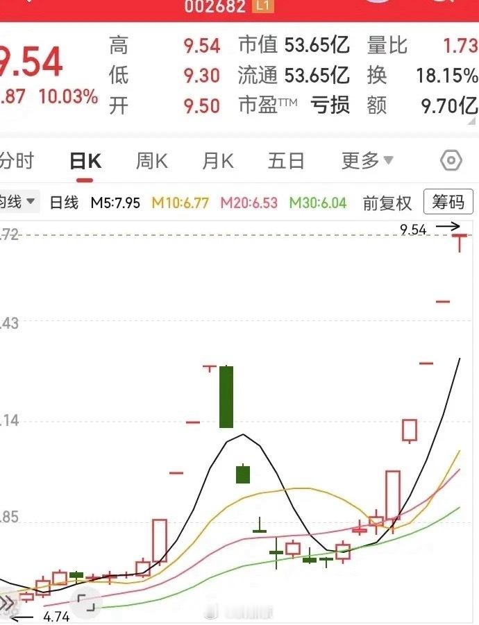 走势又成妖了?还是亏损票厉害呀!6天都是涨停板,不到10天时间,从5块多涨到9块。之前走势从4块飞到8块,没想到跌下去没多久,多头又搞起了第二轮。有一说一,看不懂它上行的逻辑,感觉这纯粹就是硬拉上去的。这种地基不稳的票,还是要敬而远之,指不定哪一天就突然掉下来了。而且又因为现在翻了一倍多的高度了,那么在走势掉头回落的时候,跌个30%是再正常不过的了。这种下行深度,对于从底部坐轿子上来的人来说,可能不算什么。但是对于高位闯进去的人而言,就可能被陷在里面,不知道猴年马月才可以走得出来了。现在在技术指标上,其指标数值也存在较大的超买迹象了,有一定回落的技术需求。但通常像这种飞上去的走势,一旦进行了向下回落的方向,有可能就刹不住车了,甚至在跌破了原来的上行通道,导致了走势上的多空转化,这也是非常常见的现象。所以对于这种走势,是可远观而不可亵玩焉!
