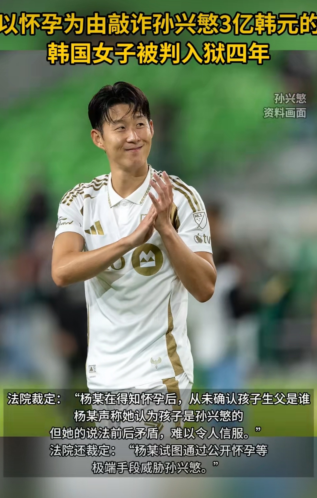 |韩国球星孙兴慜遭敲诈勒索案尘埃落定,20多岁女子杨某因谎称怀孕勒索3亿韩元(