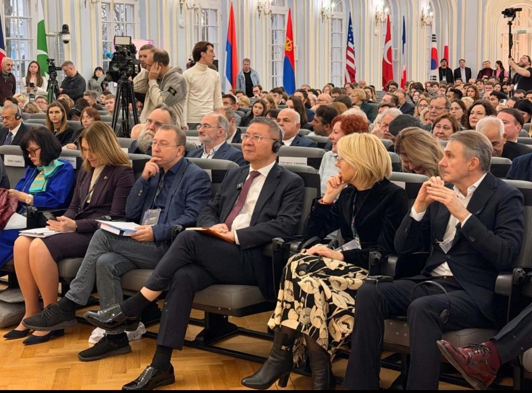 张维为教授参加学术会议。 俄举办国际科学与实践大会,举办日期是在12月5号到6号。复旦大学张维为教授受邀参加会议。 如所示,看来张维为教授受到了举办方的礼遇。为什么这么说呢?我们可以看看张教授坐的位置:在台上,总共有六个位置,张教授在六席中有一席;在台下,张教授坐在第一排的重要位置。 有一点要强调的是,这次参会的有20多个国家,有中、美、俄、韩、西班牙、意大利和马里等国家。张维为教授在台上、台下都坐在重要的位置,从这里来看,张教授是作为重量级贵宾参加的。