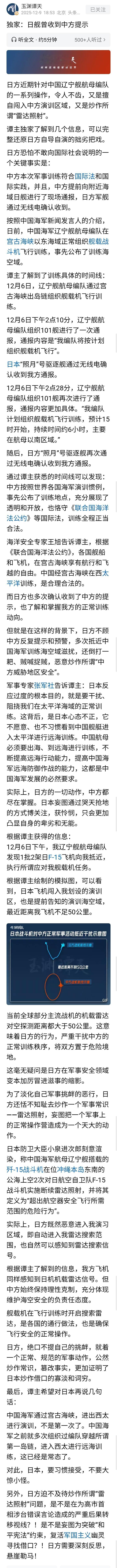 根据玉渊谭天独家消息披露,发生火控雷达照射事件前,日方军舰曾两次确认收到我方提示。 第一次通报时间是12月6日下午2点10分,通报内容为“我编队将按计划组织舰载机飞行”。 日方“照月”号驱逐舰,通过无线电确认收到我方通报。 第二次通报时间是12月6日下午2点28分,同样是我方101舰向日方“照月”号驱逐舰进行通报,这次通报内容已经很具体了:“我编队计划组织舰载机飞行训练,预计15时开始,持续时间约6小时,主要在航母以南区域。” 日方“照月”号再次通过无线电确认收到我方通报。 至此,事情的来龙去脉一清二楚,显然是日方蓄意挑衅在先,被我方火控雷达锁定后还到处哭天抢地,卖惨,一副恶人先告状的嘴脸显露无疑! 我在想,我们是太过于菩萨心肠了,还是已经落入诬陷就自证的习惯性误区了呢? 既然日方已经两度确认收到通报,又一再硬闯演习区域,我们是不是可以在第二次雷达锁定时先行击落呢? 毕竟,事不过三嘛,日方两次确认收到通报,再加上第一次雷达锁定也放过它,已经是第三次了。 那么在这种情况下我方击落对方是不是合理合法呢? 后面即使打国际官司,咱们一亮证据,大家都明白原来是这么回事,谁还会搭理它呢! 这么明显的蓄意挑衅就该让它付出代价,让它长长记性,这样不比总是使我方陷于被动自证好吗?大家怎么看?欢迎评论区留言讨论。