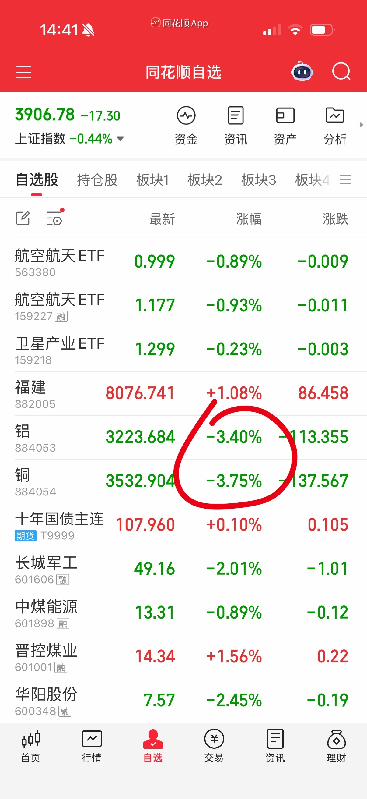 铜跟铝开盘我就切了,昨天涨停的龙头今天也大跌,吃尾巴风险太大。