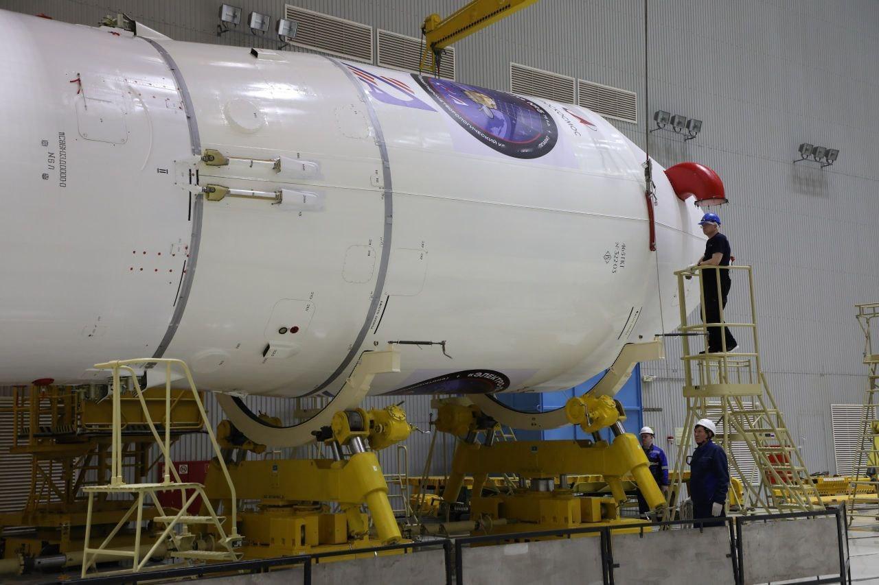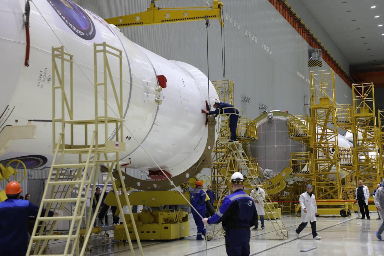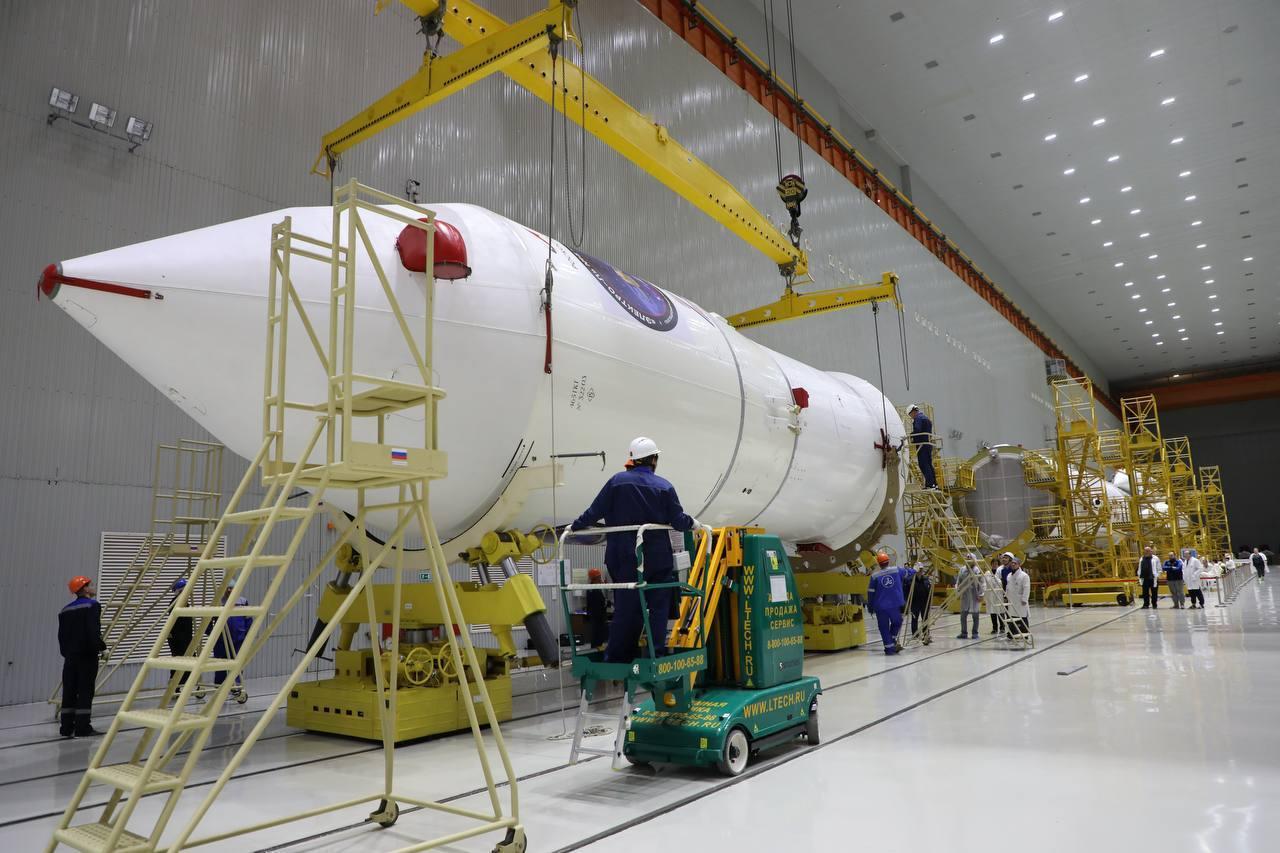 【质子-M火箭完成载荷整流罩组合体与上面级的整合】在拜科努尔(Baikonur)航天发射场,质子M(Proton-M)运载火箭完成了火箭DM-03上面级和载荷整流罩组合体的整合。目前,火箭计划于12月15日发射。从图中可以看出,还有两个质子M运载火箭的一级氧化剂储箱在拜科努尔存放,它们是为明年的发射准备的。