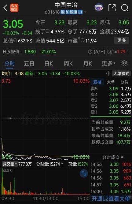 中国中冶低开4.72%后惨烈跳水暴跌,没过多久直奔跌停,上午仍然有很多资金涌入抄底,跌停板多次打开但是到了午后抛压仍然不减最终惨烈封住跌停板,此时中国中冶的市净率仅仅只有0.61,出售资产变成现金不是很好的事情吗为什么会发生暴跌。受此影响中国建筑也跟着暴跌2.84%再创新低,市净率仅仅只有0.44,中国铁建,中国中铁,中国交建都跟着下跌,非常惨烈,个个都是严重破净,个个越跌越低,相反,最近很多亏损股却越涨越高。