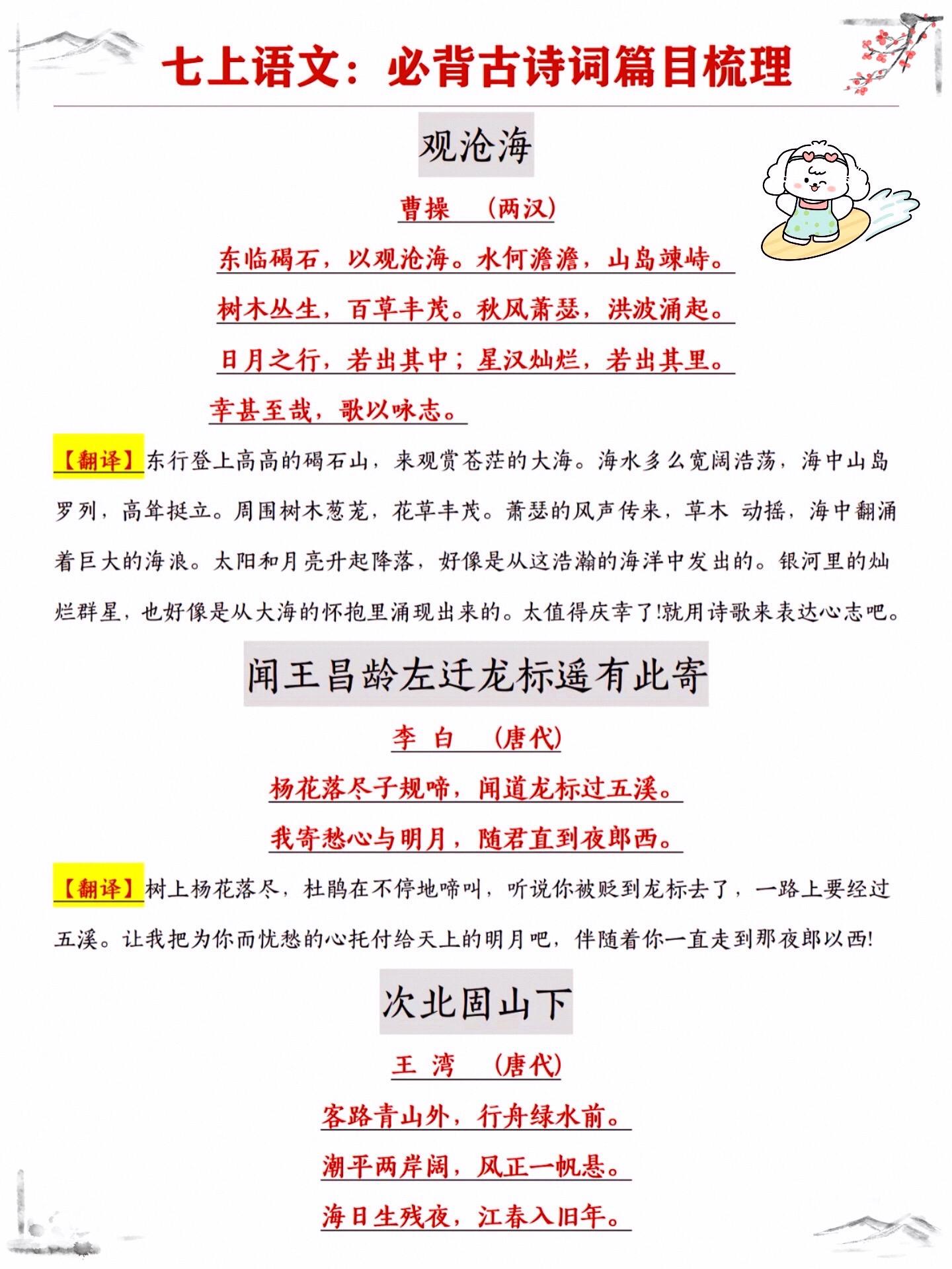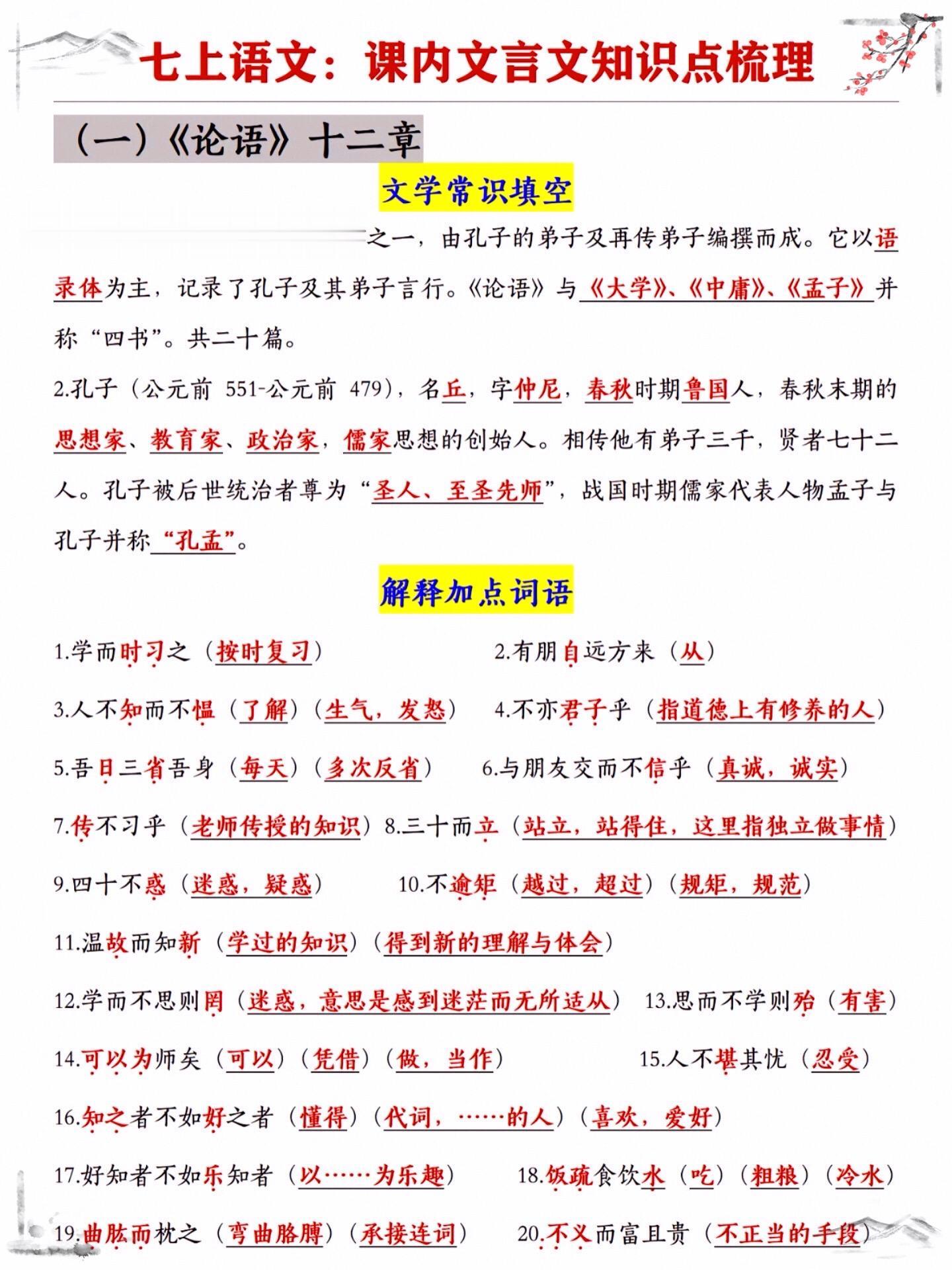 七年级上册期末考试全册复习重点必背常考。七年级上册语文知识点,老师给大...