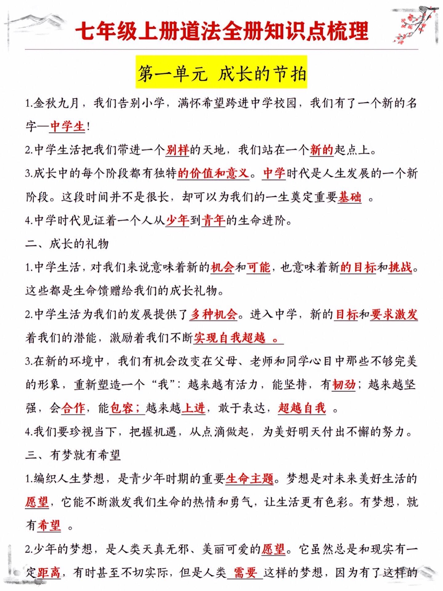 七年级上册期末总复习必背重点知识汇总。七年级上册各科必背重点,老师给大...
