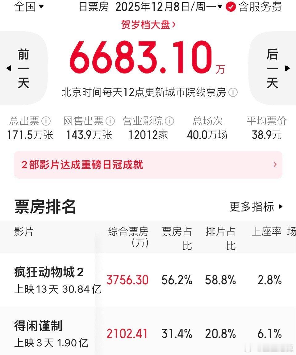 《得闲谨制》连着两天票房“正挂”(票房占比大于排片率),而且大于数超过了10%,表现相当不错。不仅如此,《得闲谨制》这两天的单日票房都超过了预测票房。周一预测1800多万,实际票房2100多万。今天也超了预测票房。