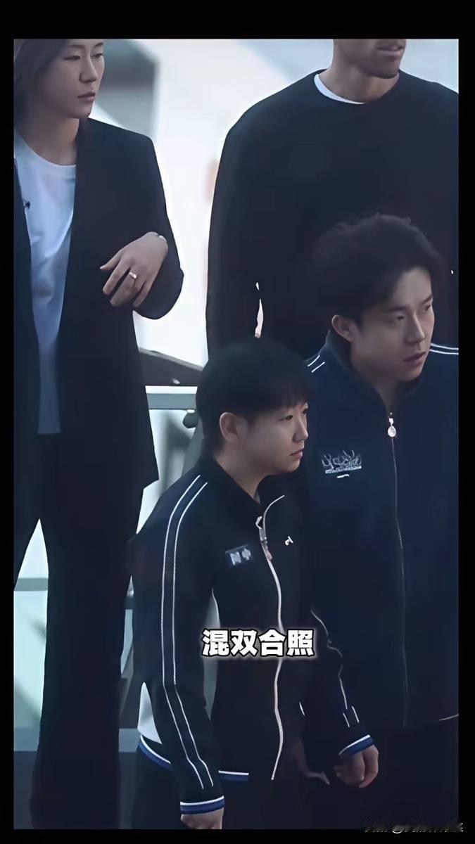 第一次看见莎莎和王楚钦站合照边儿上。 弄半天,他俩拿的是外卡。 这照片看得我有点