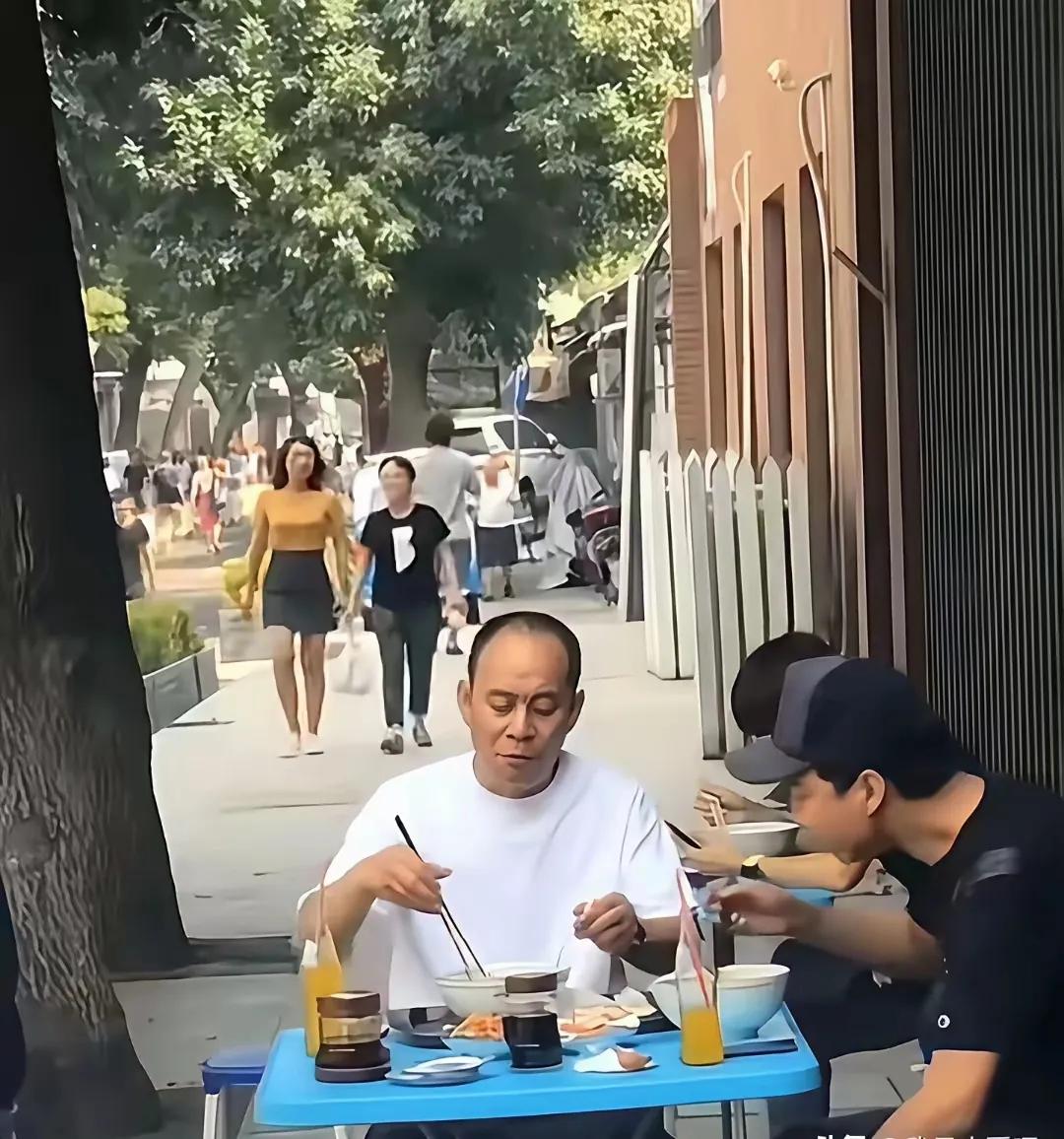 网友在路边摊看到一大爷很像张光北老师,但走近看又不太像,也不太可能,张光北老师有这么老吗,能在这里随便吃饭吗?