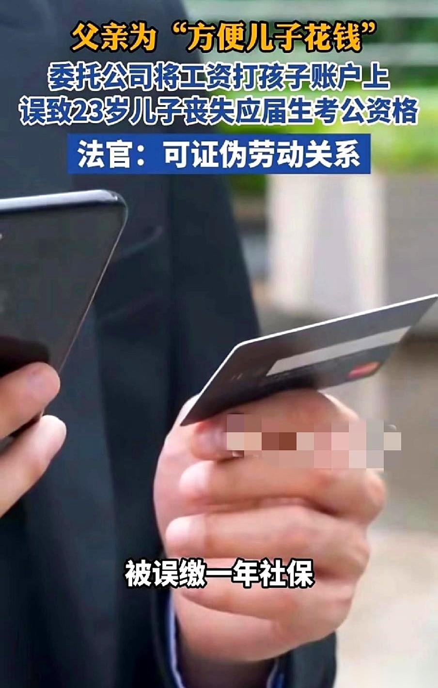 我爸怕我钱不够花,让公司直接把工资打我卡里。 就这么个事儿。 然后,我就“被就业”了。半年没日没夜刷的题,准备考的公,资格没了。 一张社保缴费单,拍在我脸上,比东北的雪还冷。说我,李东,23岁,已经是一个有单位的人了,应届生的金字招牌,啪,碎了。 我当时就懵了,彻底懵了。 之后半年,就是跑。 去公司求爷爷告奶奶,去人社局磨破嘴皮子。人家就一句话,“系统里有记录,我们也没办法。” 那种感觉你知道吗? 就像你掉进一个莫名其妙的坑里,你拼命喊,上面的人都听得见,但他们只是摊摊手,说“没办法,规定就是你得在坑里待着。” 我爸在我旁边,搓着手,一脸的愧疚。我怎么忍心怪他?他一辈子没为自己活过,好不容易想“时髦”一次,让儿子花钱方便点,结果天降一口大锅。 这叫什么事啊。 有时候觉得,爱这东西,真能把人逼疯。一份笨拙的、毫无保留的父爱,差点亲手终结了我的前途。 幸好,最后是法院。幸好,还有讲理的地方,还有愿意去查清事实的人。当法官说“可以证伪劳动关系”的时候,我差点哭出来。 那张迟来的“证明”,比我拿到过的任何奖状都重。 它证明的不是我没上过班,它证明的是,在这个冰冷的、讲规则的世界里,人情和常识,还没死透。