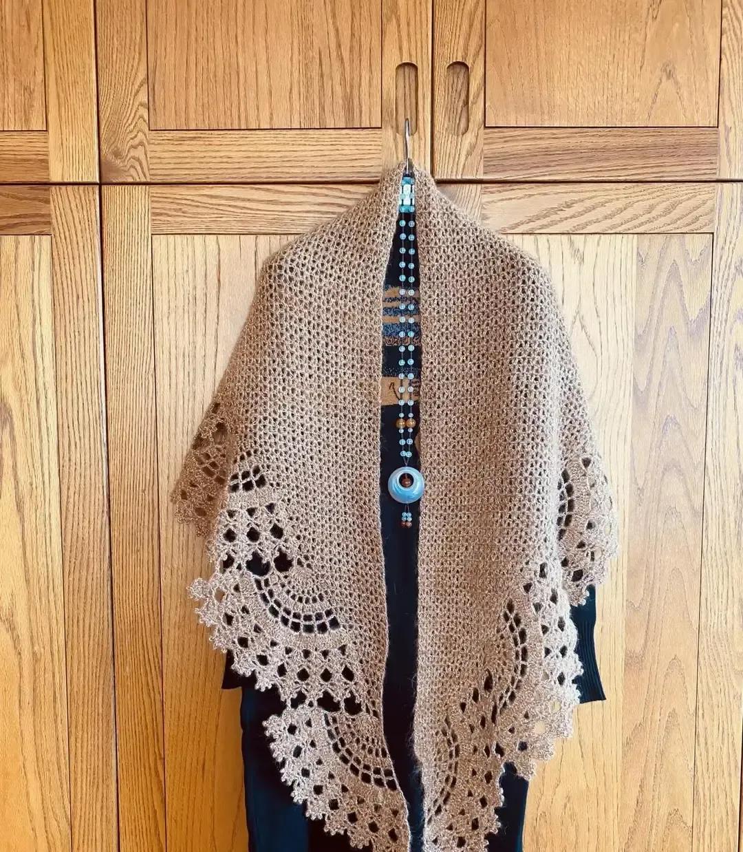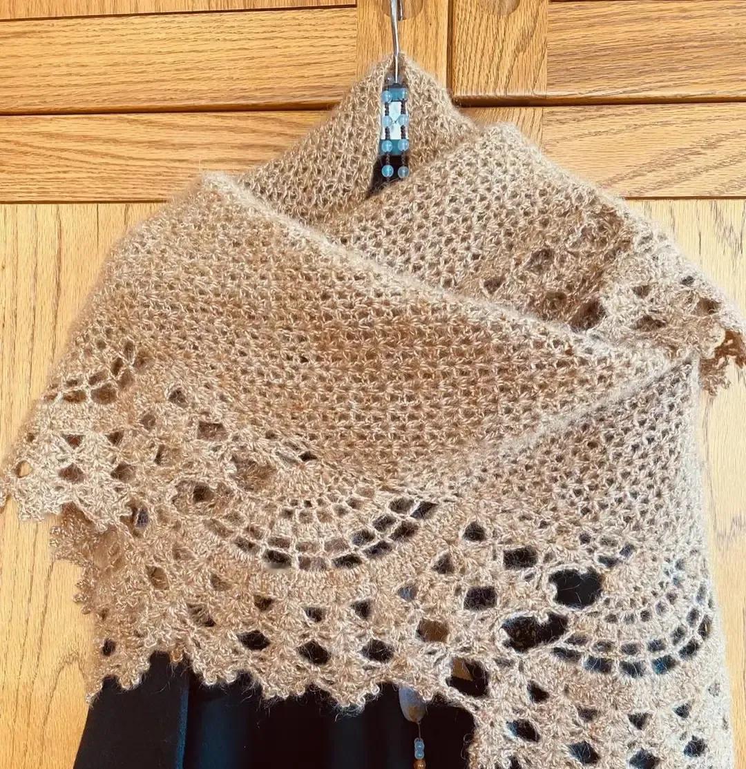 小红书上一个手工博主晒出自己钩的贝壳花披肩,78块钱毛线,一周完工,挂闲鱼卖26