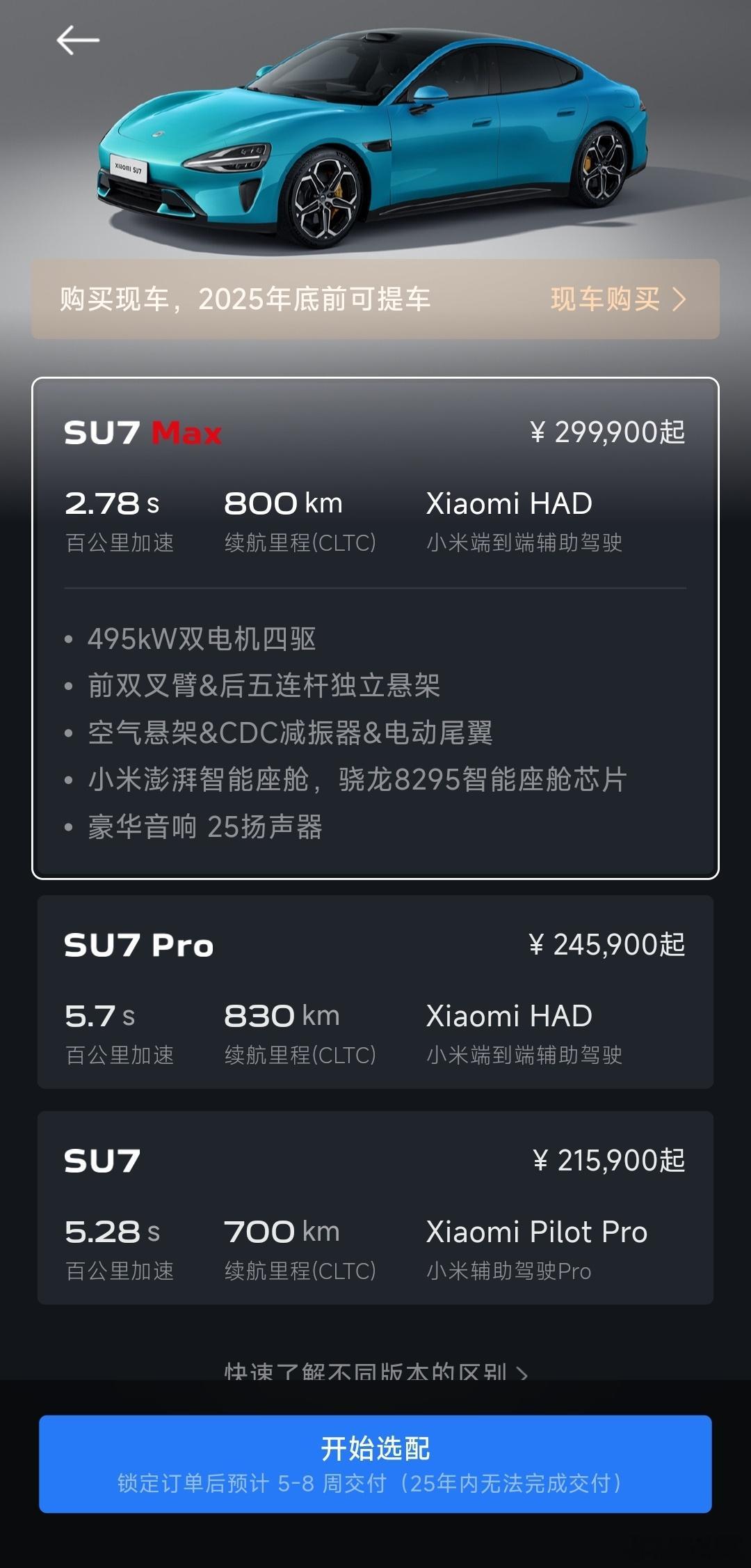看到一张海报,12月15日前,小米SU7购买指定配置,年内开票交付。也就是说,实际交付周期已经来到了2-3周。