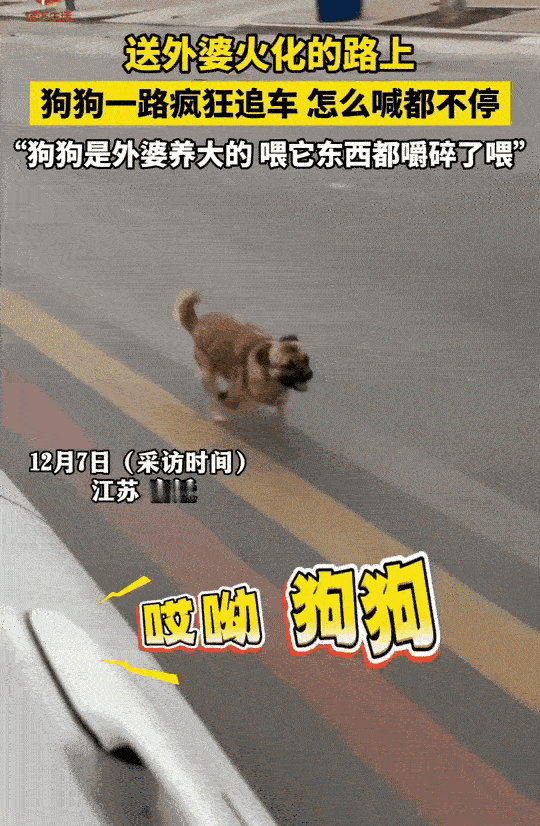 太有灵性了!江苏一老人离世,家人将其送去火化,没想到,车子刚启动,老人养的小狗就追了出来。 那小狗拼了命地跟在车后跑,四条小短腿迈得飞快,嘴里还不停发出呜呜的叫声,听得人心头发酸。家人看着不忍心,几次停车想把它抱上车,可它就是不肯,只认准了要跟着载着老人的车跑。 一路上,小狗不敢有丝毫停歇,不管车子开得多快,它都死死咬着牙跟在后面。路人看了都忍不住驻足,有人掏出手机记录下这一幕,有人忍不住感叹,这狗通人性啊,比有些人都重感情。 家人看着后视镜里越来越小的身影,心里又疼又无奈。老人在世时,最疼的就是这只小狗,走到哪带到哪,好吃的先给小狗留着,晚上还抱着小狗睡觉。这一人一狗,早就成了彼此最亲近的伴。 谁能想到,老人走了,最舍不得他的竟然是这只不会说话的小狗。它不懂什么是离别,只知道那个每天陪它、喂它的人要走了,它必须跟上,不能让他一个人孤单前行。 后来有人说,动物的感情最纯粹,不掺任何杂质。你对它好一分,它就会用一生来回报你。老人养了它几年,它却用自己最执着的方式,送了老人最后一程。 网上看过太多这样的例子,主人离世后,宠物守在墓前不肯离开,日复一日,年复一年。它们不会表达,却用行动诠释着什么是忠诚,什么是不离不弃。 再看看我们身边,有些人走着走着就散了,有些感情说着说着就淡了。比起那些轻易背叛、转身就忘的人,这些小动物的坚守,更让人觉得珍贵,也更让人羞愧。 老人的家人说,等处理完后事,一定会好好照顾这只小狗,把老人的爱延续下去。毕竟,这是老人留在世上最牵挂的小家伙,也是老人爱过的证明。 动物从来都不是我们的附属品,而是我们的家人,是我们生命中不可或缺的一部分。它们用短暂的一生陪伴我们,给我们带来欢乐和温暖,这份感情,值得我们用心去珍惜,用一生去守护。 各位读者你们怎么看?欢迎在评论区讨论。