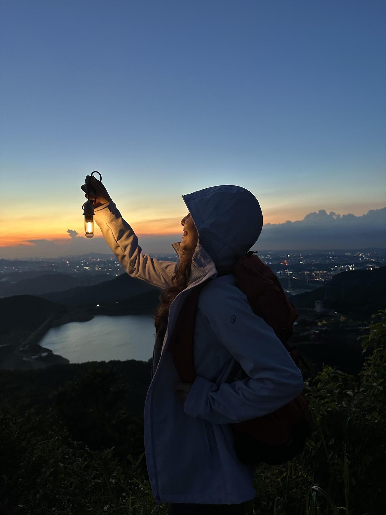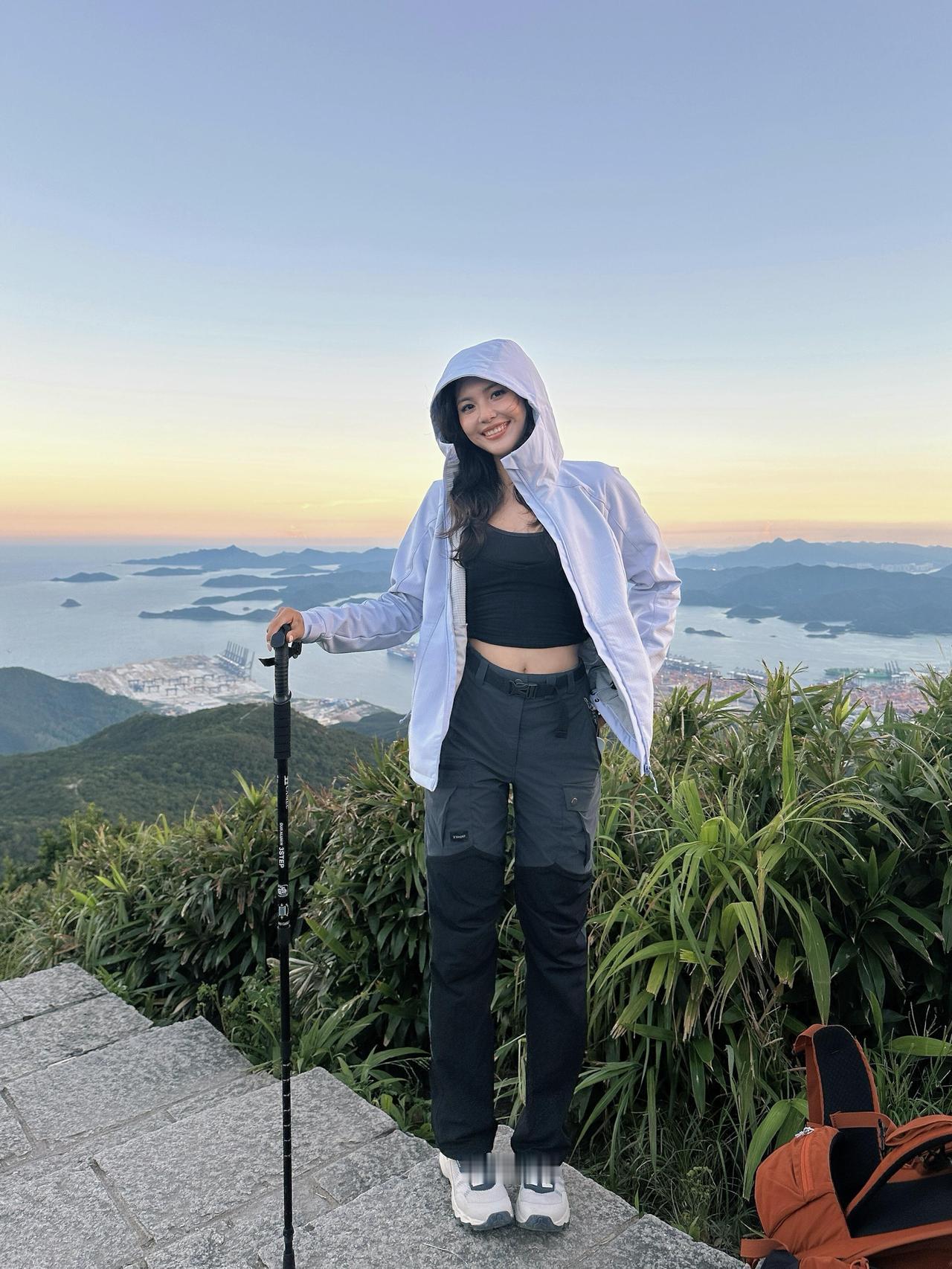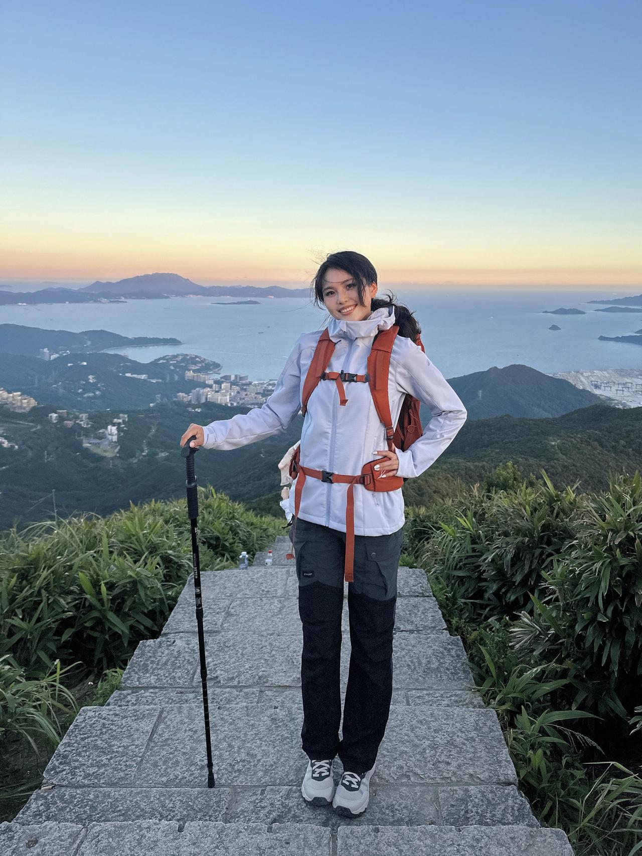 登山杖敲开石阶的晨雾时 风正掠过梅沙尖的草叶 把山海的辽阔,揉进她扬起的笑意里 浅白的冲锋衣裹着山野的风 橙红背包是行囊,也是不肯黯淡的热烈 她站在石阶上,身后是铺展的海 是错落的岛,是城市蜷在山海的褶皱里 发丝被风拂乱的瞬间 她抬手,指向远方的霞光 像指向所有未说出口的奔赴 那些踩着碎石、淌过汗的路 都在登顶的这一刻,成了值得 背靠刻着“梅沙尖”的石碑 她张开双臂,让风灌满衣襟 落日把金辉洒在海面,也洒在她的肩头 山海沉默,却接住了所有勇敢 登顶的意义从来不是终点 是风里的自由,是脚下的路 是站在高处,看见自己 也看见山海,都在为奔赴而温柔