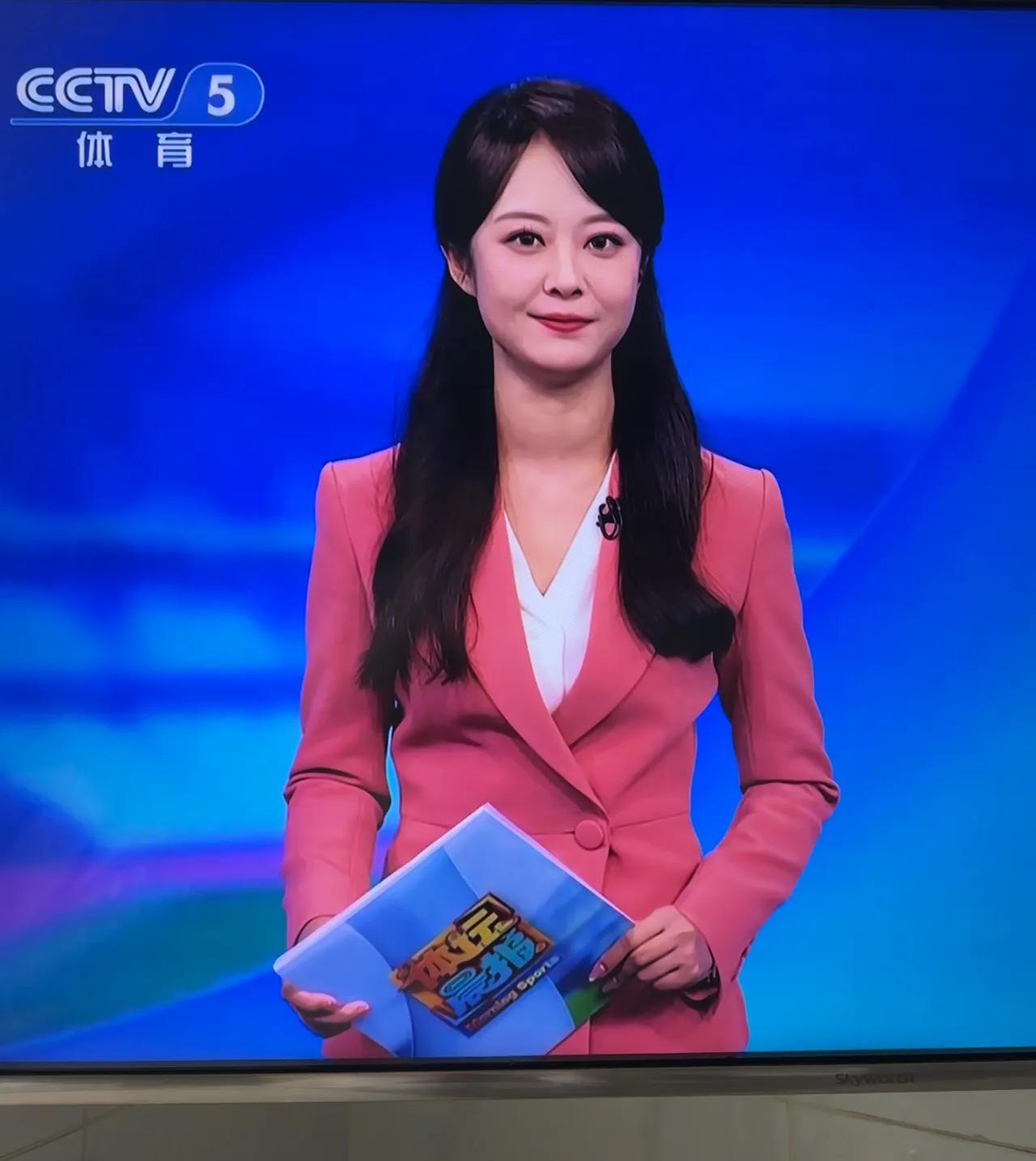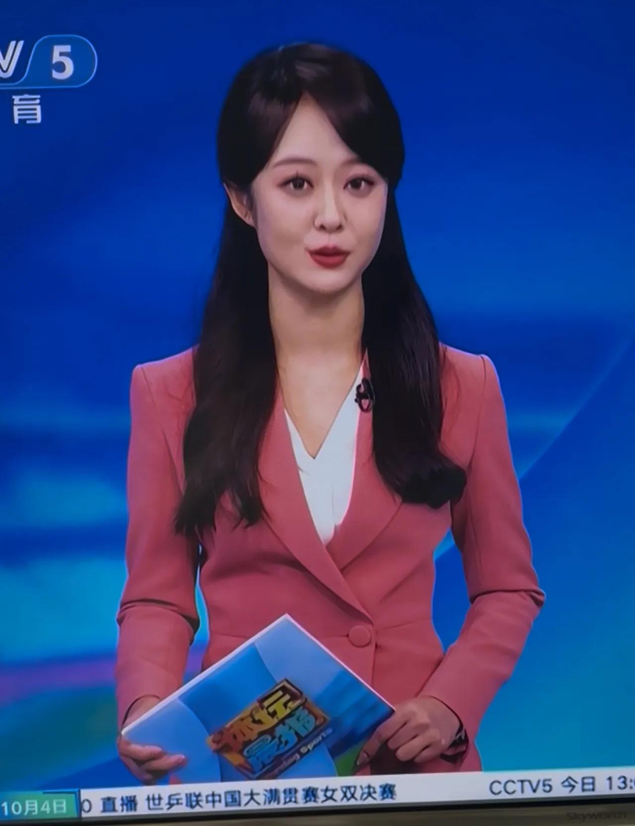 粉衣美人持书卷,新闻播报展风采。主持人着装魅力 主持人出镜服饰 红巾温婉女子 时尚新闻主播 央视女记者