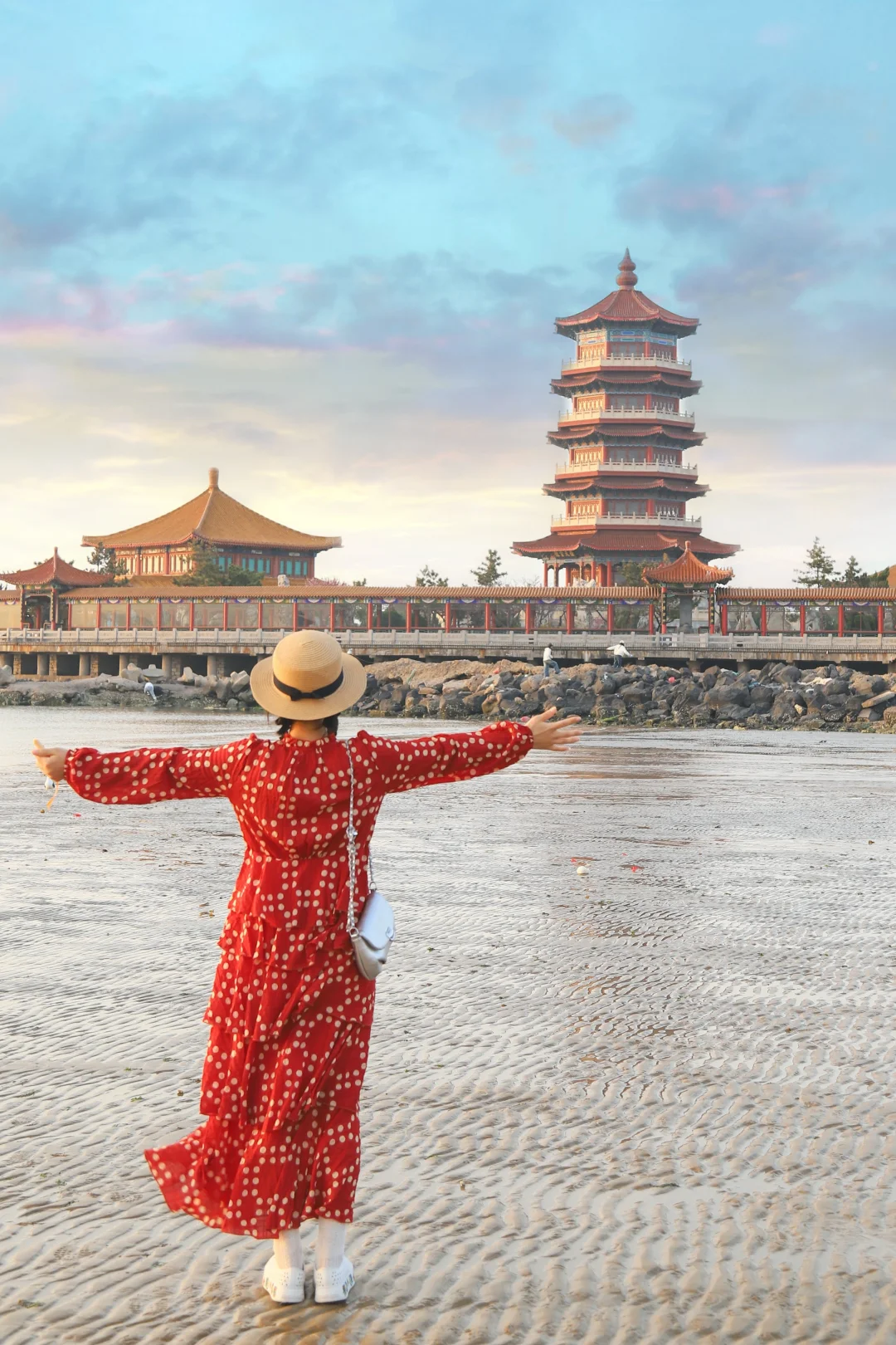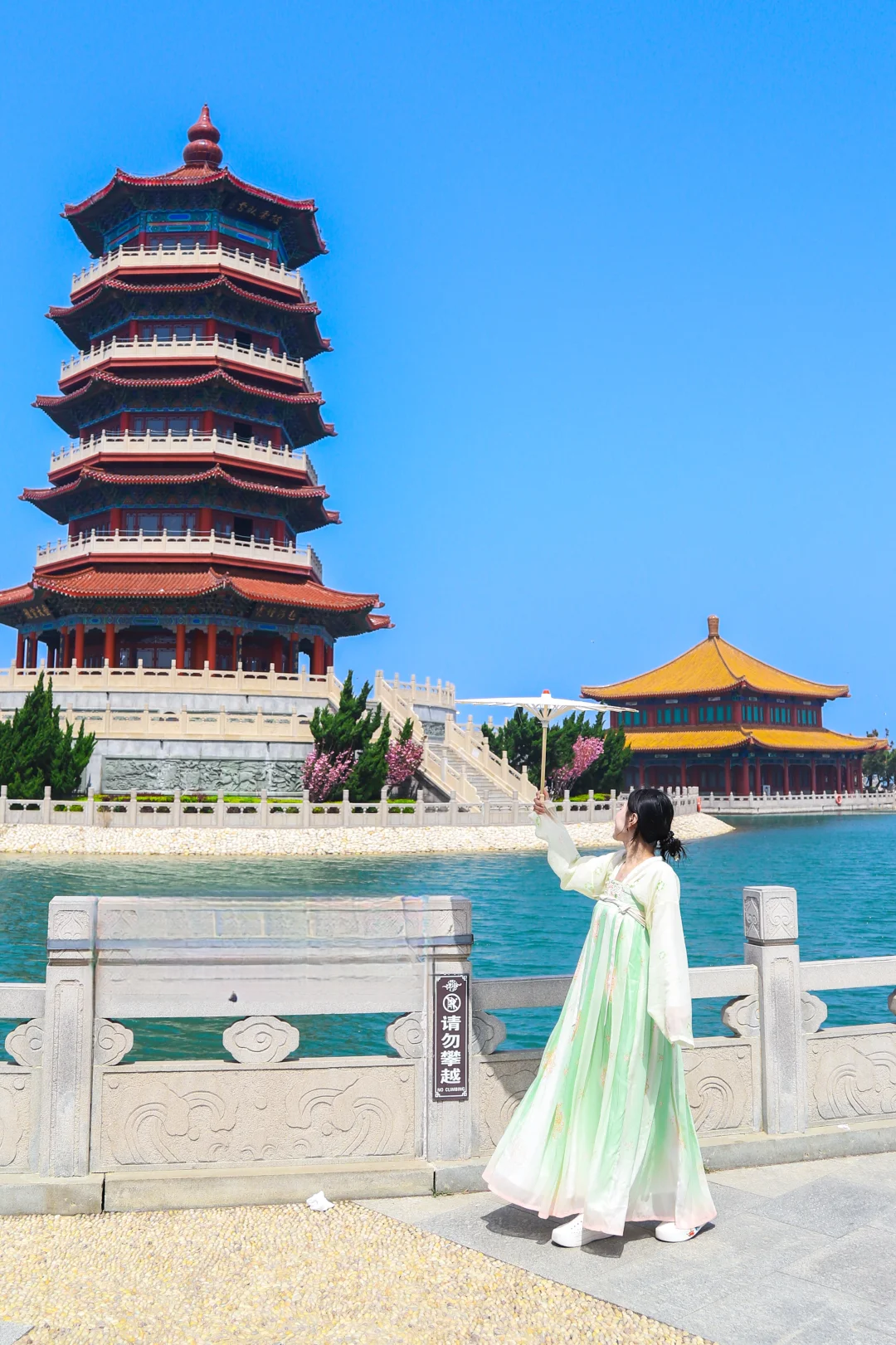 👉听着八仙过海各显神通的传说,穿着汉服在望瀛楼观海,找好角度,真的秒出大片