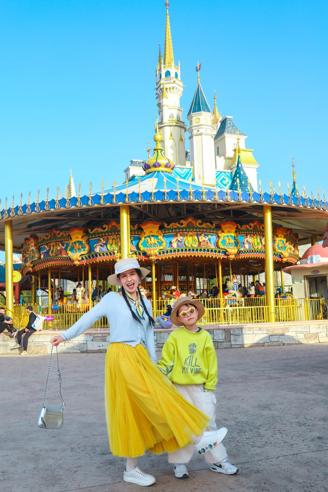 👉亲子家庭进门先去右手边童话小镇,魔幻城堡,适合低幼儿童玩的项目,白马过山车,海盗船,太空漫步,旋转木马,伞塔。。。我们周末去的,虽然排队,但是速度很快