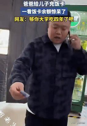 “财大气粗”!餐厅里,一名男子给上学的儿子充饭卡,然后将饭卡交给儿子,儿子问父亲充了多少钱,父亲却说“够你吃了啊”,当儿子拿着饭卡一查余额,同学们都惊呆了………网友:小伙子,这钱够你大学吃四年了吧! 中午十一点四十,学校食堂迎来了每天最拥挤的时段。蒸汽从窗口的汤桶里不停往外冒,混着红烧排骨、麻辣香锅和葱油拌面的香味,让饥肠辘辘的学生们排队时都忍不住吞咽口水。 小伙子林浩夹在长龙一般的队伍里,肩上背着刚上大一时买的旧书包,脚下站得笔直。他人不算高,但看起来结实干净,一双眼里总藏着些羞涩。 他把托盘放在窗口前,阿姨熟练地舀了一勺宫保鸡丁,递给他时还笑着说:“小伙子,今天鸡丁比较大,吃得下不?” 林浩嘿嘿一笑:“吃得下,谢谢阿姨。” 他拿着托盘走到刷卡机前,把饭卡往刷口一放,心里还在盘算要不要加个蛋——结果下一秒,“滴滴滴滴——”刺耳的报警声瞬间划破了周围的喧闹。 前面打饭的几位同学还没反应过来,后面的人已经抬头四处寻找声音来源。 林浩的脸“嗖”地一下红到了耳根。他赶紧把饭卡抽回来,声音小得像蚊子:“啊……没钱了……” 身旁一位女孩好心提醒:“你再刷刷看?可能是机器问题?” 林浩低着头,摇了摇:“应该不是。” 这是他上大学以来第二次遇到这种窘事。第一次发生在军训那天,他尴尬得差点想把头埋进餐盘里。这一次……他觉得更想原地消失。 他攥着饭卡,托盘都来不及放好,匆匆退出队伍,把托盘放在回收口后,跑到食堂外的长椅上,低头掏出手机,给爸爸拨了电话。 电话响了两声就接通了,伴随着发动机的轰鸣,父亲粗犷又带点沙哑的声音传来:“浩浩?上课呢吧?” “没……在食堂。”林浩挠了挠后颈,声音低得几乎听不见,“爸,那个……饭卡没钱了……” “哦,没钱就充点啊。”父亲声音依旧平静,“你说吧,要多少?” “够吃到月底就行。”林浩小小地嘀咕,“你抽空看看……不急。” 他很清楚父亲的习惯:一般都是一千块,不多不少。这点钱,若省省用,一天二三十,基本够吃。他自己也早习惯了。 电话那头沉默了几秒。 随后,父亲突然带着点急气说:“你小子是不是又省着吃?我听你妈说你上次一个月花一千还剩三百!” “我没省啊,就是……随便吃。” “随便吃?我看你是瞎糊弄自己!”父亲却越说越气。林浩被吼得愣住了:“爸,我真没……” 父亲打断他:“行了,我一会儿给你充。你等会儿查下就行。别磨叽,我还有货要送,耽误不得!” 电话“啪”一下挂断。 林浩愣愣地看着屏幕,又想到父亲的脾气,不禁抿嘴笑了一下:“肯定又是一千……也不错了。” 几分钟后,他慢悠悠走到食堂角落的自助查询机前,把饭卡放上去。 嘀——屏幕亮了。 余额显示的一瞬间,林浩整个人僵住了。 ¥10,000.00 林浩大脑嗡的一声:“……?” 后面的同学探头:“哥们儿,查完没?我也要查——一万?” 林浩:“我……我爸……我爸是不是手滑了?” 一群同学围了上来。 “这是手滑能滑出来的数吗?” “哥们儿,‘够吃到月底’是你爸的月底还是咱们的月底啊?” “这钱够你在食堂吃到毕业了吧!” 有人打趣:“兄弟,这卡丢不得,丢了等于丢个小目标。” 有人羡慕:“别人家的爸爸系列啊……” 有人调侃:“你爸这是怕你饿死在大学里?” 就在大家议论纷纷之时,他的手机震了一下。 来自父亲的语音消息:“充好了。别省着吃!听到没?” 接着另一条语音又跟上:“你妈说你瘦了。我不在你身边,你自己把自己照顾好。钱不够再说。你安心读书,我和你妈撑得住。” 简单的几句话,把林浩鼻子酸得一塌糊涂。 这时旁边一个室友拍拍他肩:“你爸挺硬气的啊,但对你是真疼。” 这个故事被发到网上后,迅速登上热搜。 有人评论: “这不是土豪,这是父爱——藏在粗糙里的柔软。” “跑运输的人太不容易了,他们的每一分钱都是汗水和换来的信任。” “孩子别省,父母省下的是他们的苦,攒下的是对你的爱。” 还有网友调侃: “哥们儿,这饭卡你要是吃不完,可以出一本《大学食堂全攻略》。” “我建议你爸给你买个链子把这卡挂脖子上!”