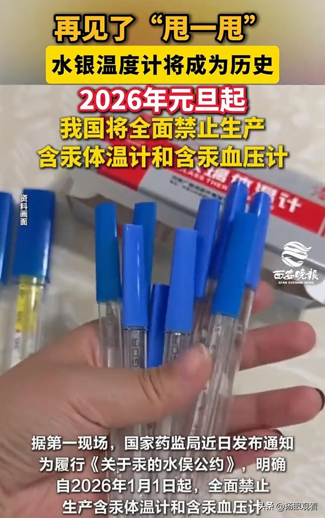 水银体温计为啥要全面禁产?看完懂了✅ 终于明白为啥2026年起要全面禁水银体温计了!不是矫情,是真的该换了! 核心原因超实在,安全和环保双考量👇 ▪️ 健康风险太高:一支含1-2g汞,碎了就挥发剧毒蒸气,吸了伤神经、损肾脏,老人小孩中招更危险,日常摔碎超易中招 ▪️ 污染难治理:汞不会降解,渗土壤、染水源,还会通过食物链累积,后续清理成本巨高 ▪️ 履约国际公约:我国签了相关公约,26年起禁产是必做的,合规又护环境 ▪️ 替代超成熟:电子体温计、额温枪读数快还安全,不用甩来甩去,性价比也在线 真心建议家里早换成电子款,安全又省心,再也不用怕不小心摔碎踩坑啦。