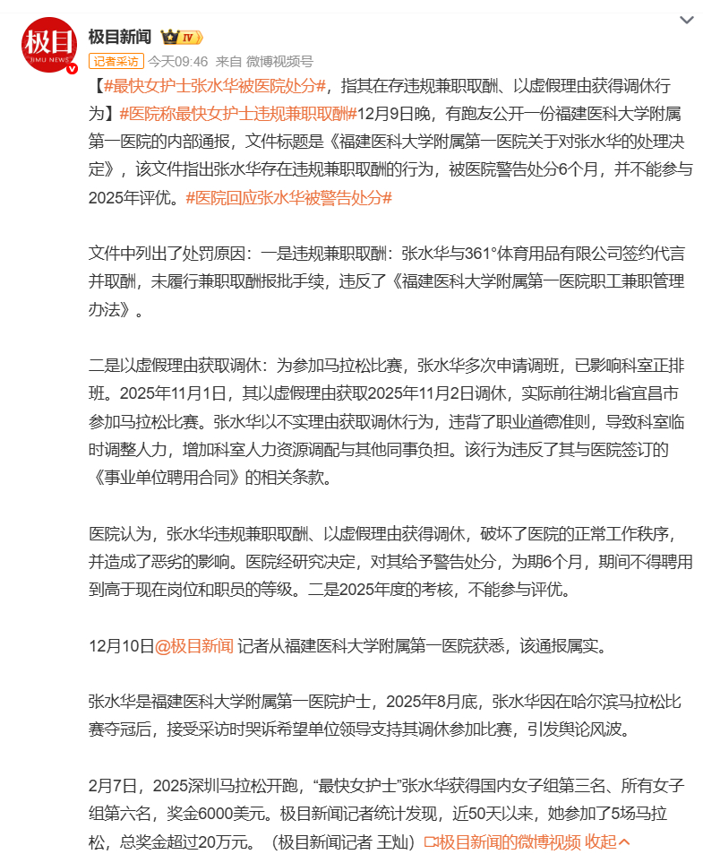 🔻有点奇怪,这种情况为什么不干脆全职跑呢?🔻收入也不低吧?最快女护士张水华被医院处分热点现场