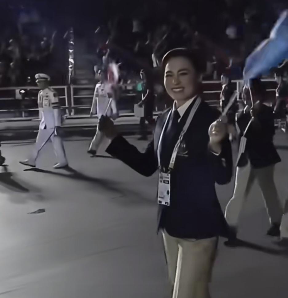 苏提达王后太忙碌啦!当地时间12越9日晚8点多,苏提达王后手执泰国小旗子,带领泰国运动员入场东南亚运动会,这次共有11个国家运动员参与角逐。 苏提达王后真精神啊,只见她身着运动服,蓝色小西装,浅色休闲裤,眉宇间喜气盈盈,脸上洋溢着欢乐。步伐轻快洒脱。真是充满青春活力啊。美丽,智慧与高技能于一身。 大王宫,运动场,外交场合都留下她的身影,苏提达王后生活太充实了。泰国拉加曼加拉体育场举行的东南亚运动会开幕啦!