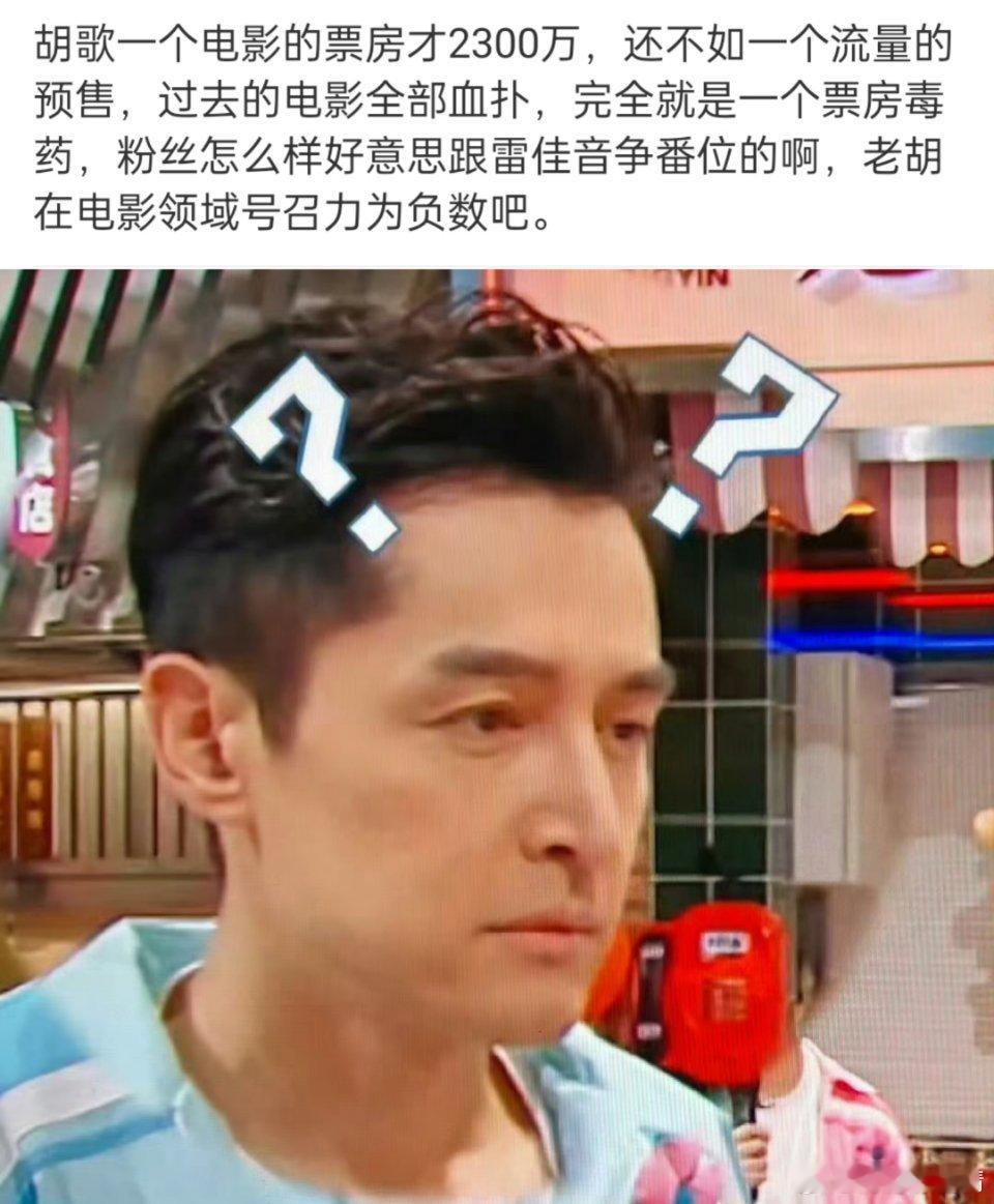 胡歌2004年出道拍过的电影总票房3亿+,近期上映的《三滴血》票房2300万,网友说连一个普通流量都不如,票房号召力为负数,票房毒药实至名归。对此你怎么看?