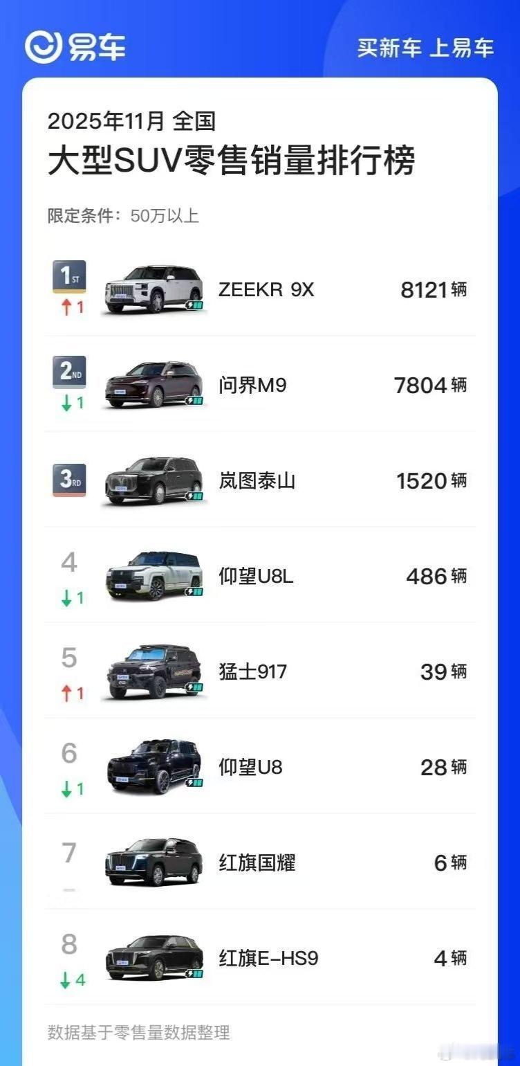 极氪9X上个月销量出来了,一边卡着部分零部件供应链的坎,一边11月卖出8000+辆登顶50万级大型SUV销冠,还是53.8万的均价下,这个成绩单着实牛逼。不得不说,国产豪华里面,最具有代表性的就是9X和M9,两者共同组成中国豪华SUV双雄,真正意义上为国内的豪华车提供了范本。极氪9X