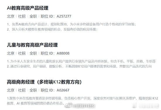 小米或进军AI教育,正招聘多个相关岗位,聚焦多终端K12教育方向