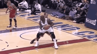 镜头一是巅峰期的奥尼尔,镜头二是即将退役的奥尼尔,通过这两个镜头不难发现,奥尼尔从来都不是体重庞大、慢悠悠的力量型中锋,而是机动性特别强的内线。奥尼尔给球迷的印象往往是是那种又胖、力量又强、投篮又特别差的中锋,可是他职业生涯中一直都是一个速度型中锋。2001年的奥尼尔体重290多斤,身高216厘米的他在空中可以拉杆上篮,这个动作可能现在许多后卫做不出来。镜头二是奥尼尔一对一单打诺阿的画面。这个时候奥尼尔快40岁了,他在篮下用一个速度极快的后转身瞬间过掉了诺阿,面对罗斯完成了扣篮。奥尼尔同时兼备力量、速度和体能优势,这种中锋无论在哪个时代打球,都会是最顶级的中锋。