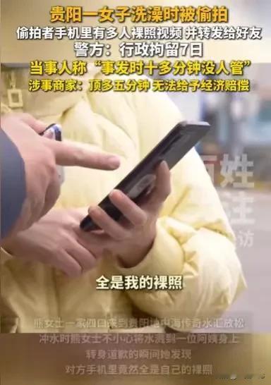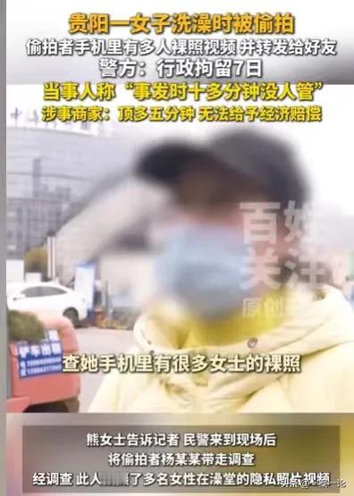 贵州贵阳,女子去汗蒸,冲水的时候,水溅到后面的老阿姨身上,她转头过去道歉,却意外发现了老阿姨正在拍她的裸照,她赶紧夺手机过来,她发现了自己很多的裸照,还有一个视频还没有发送出去,她赶紧报了警,结果,民警在她的手机里,发现了更多女子的裸照。 熊女士一家四口出去游玩,他们要好好放松,享受这难得的假期,他们来到了一个地方汗蒸。 汗蒸的过程,是不穿衣服的,由于里面都是女子,熊女士也没觉得有什么不妥,反正大家都如此,她也入乡随俗了。 这一次的汗蒸,确实让熊女士感到了放松,汗蒸之后的她,感到非常舒服。 结束了这一次汗蒸,她就打算开水冲一下,带着孩子出去和家人继续到处游玩,欣赏美景。 但在冲水的时候,她明显看到水溅到了后面一个人的身上,后面是个老阿姨,还在汗蒸,水溅到她的身上,肯定影响不好。 熊女士感到特别不好意思,她就赶紧转过身来,想向老阿姨道歉。 结果这一转身,她发现了,让她感到不可思议的一幕,老阿姨正举着手机在拍东西,完全没有注意到有水溅到她,也根本没有注意到熊女士在转身。 只见,老阿姨的手机里正在拍摄着熊女士,熊女士转身,正好看到了老阿姨在偷拍她。 熊女士感到不可置信,竟然有人偷拍她,她发现老阿姨的偷拍后,她眼疾手快,一把夺走老阿姨的手机。 直到手机被夺,老阿姨才反应过来,她偷拍的行为被发现了,她赶紧要将手机夺回来,她要删除证据。 还好熊女士已经将手机拿在手上,即使老阿姨过来抢,熊女士也不松手,当然,老阿姨当场就和熊女士发生了争执,她一边抢一边和熊女士争吵,想要把手机夺回来。 熊女士紧紧抓住手机,不肯将手机返还给老阿姨,她还看了老阿姨的手机内容,结果发现老阿姨偷拍的不单单是视频,还有很多是她的裸照。 事实面前,熊女士非常气愤,当场就报了警。 民警过来之后,大家又发现了更多的秘密,大家发现这个老阿姨不单单是偷拍熊女士的裸照,里面还有很多女子的裸照,同时还有一个视频,里面出现三个女子的裸照。 大家都目瞪口呆了,女子只是来汗蒸而已,居然还被偷拍了,并且是一个老阿姨偷拍的,老阿姨还要将这些视频发给她的好友。 老阿姨的动机让人不寒而栗,熊女士更是对汗蒸有了阴影,不敢再来了。 发生这样的事情,她当然很气愤,当然要追究,更让她心寒的是,在发生这件事情之后,十几分钟了,汗蒸的工作人员,居然没有站出来,替她处理这件事,更没有人替她说句话。 当时的熊女士是带着孩子的,她一边带着孩子,一边抢手机,还一边在大喊,当时的工作人员是听到的,但是没有一个工作人员过来处理这件事。 不过汗蒸处的负责人否认了熊女士的说法,他们表示可以给熊女士一家四口免门票,并且再送三张门票。 这样的处理方式,熊女士拒绝了,她要求赔偿,负责人告诉她,如果要赔偿,那就起诉,判决要他们赔赔多少,他们就赔多少。 发生这样的事情,确实令挺令人糟心的,熊女士作为一名女子,当然担心自己的裸照被流传出去。 在当时的场合,又有工作人员,发生这样的事情,工作人员应当过来制止,但是熊女士却感觉自己是单打独斗,所以她内心很不平衡。 这个老阿姨年龄那么大了,她居然干这种事情,更是让人感到不可思议。 她利用自己的身份,轻易偷拍了很多女子的裸照,老阿姨的行为,直接侵害了这些女子的权益,大家在应当追究她的责任。 发生这样的事情,老阿姨受到行政处罚是应该的。 《民法典》第1019条和第1033条规定:任何组织或者个人不得以丑化、污损,或者利用信息技术手段伪造等方式侵害他人的肖像权,且不得以刺探、侵扰、泄露、公开等方式侵害他人的隐私权。 她偷拍多名女子的裸照,这行为非常恶劣,她应当为自己的行为付出代价。 事情发生在汗蒸处,作为经营者,他们有责任,应当对顾客履行安全保障义务。 《民法典》第1198条规定:宾馆、商场、银行、车站、机场、体育场馆、娱乐场所等经营场所、公共场所的经营者、管理者或者群众性活动的组织者,未尽到安全保障义务,造成他人损害的,应当承担侵权责任。 顾客在这里,隐私权被侵犯,经营者应当给出合适的处理方式。 除此之外,如果这件事给女子造成精神损害,女子可以向老阿姨要求精神赔偿。 《民法典》第1183条规定:侵害自然人人身权益造成严重精神损害的,被侵权人有权请求精神损害赔偿。 作为女子,自己的裸照,他人不可传出去,否则就构成了侵权。 那么你对这老阿姨的行为有何看法呢?