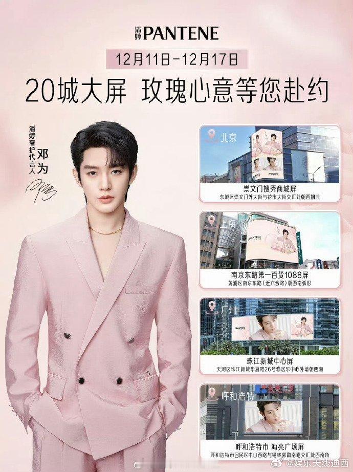 邓为潘婷新物料大片!20城地标大屏同步亮相,多平台开屏轮番播放,排面拉满,品牌对代言人的重视肉眼可见~