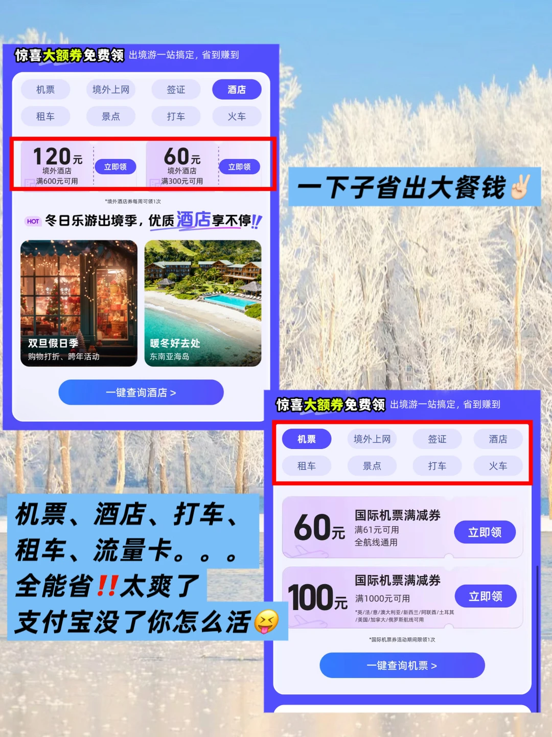 -进入小程序-点击banner进入活动页,直接解锁双旦出境大促福利!酒店600-120、300-60元优惠券每周可领,太爽了吧,直接省了一大笔~