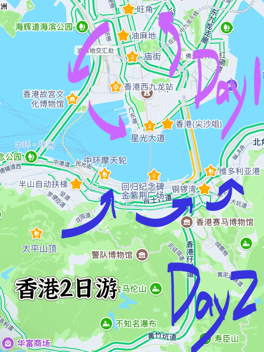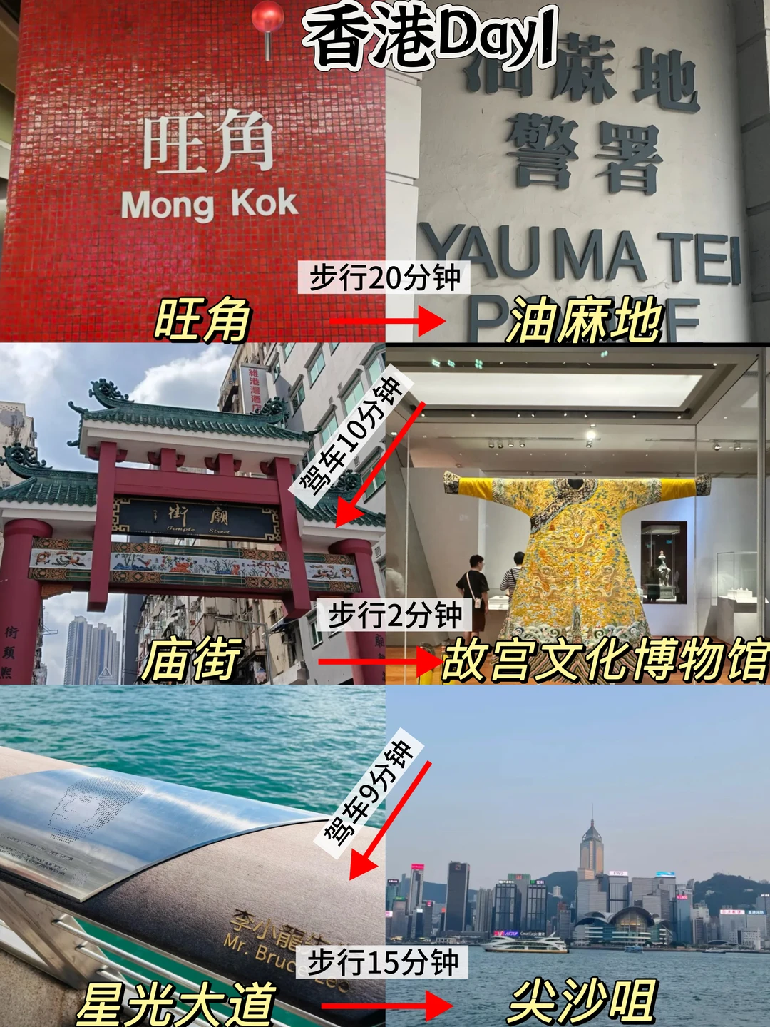 💜 Day1路线:香港西九龙站➡️旺角➡️油麻地➡️庙街➡️故宫文化博物馆➡️星光大道➡️尖沙咀