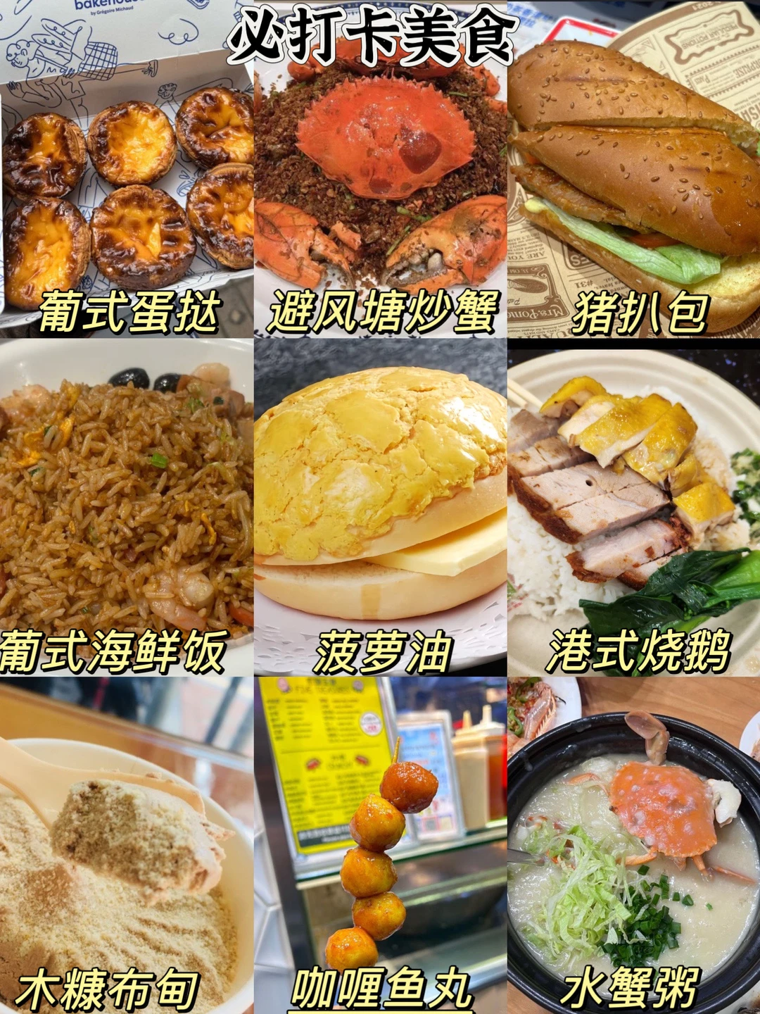 🍜云吞面 🥧葡式蛋挞 🐟咖喱鱼蛋 🥪猪扒包 🦞避风塘炒蟹 🦀水蟹粥 🥐菠萝油 🥘葡式海鲜饭 🍖港式烧鹅 ……
